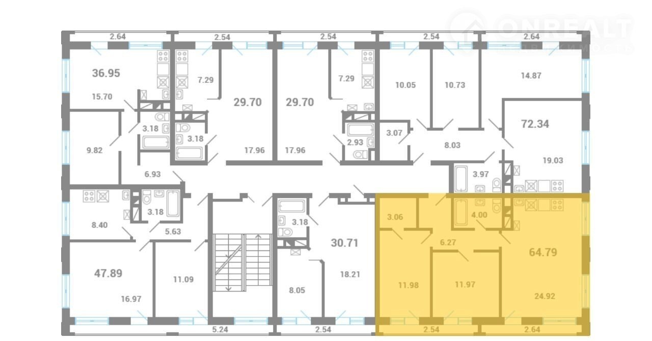 Общая площадь 64.7 м2