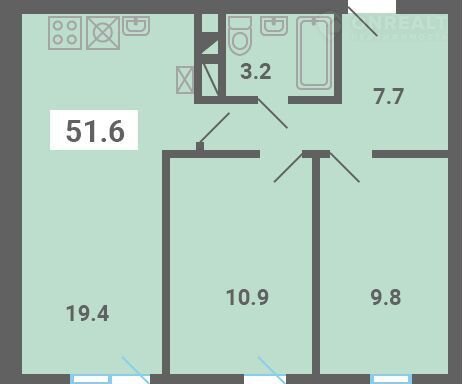 Общая площадь 51.6 м2