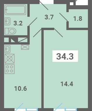 Общая площадь 34.3 м2