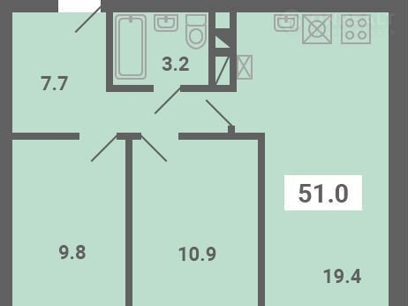 Общая площадь 51 м2