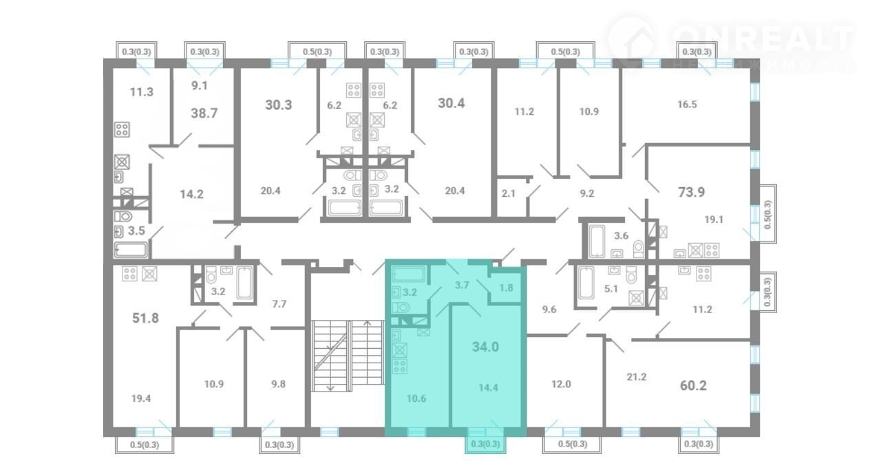 Общая площадь 34 м2