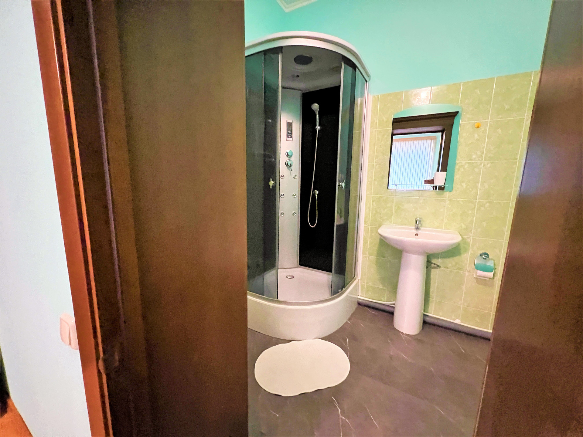 1 этаж: зал 56,8 кв. м, кухня 27,3 кв.м, болерная 18,4 кв.м, холл 36,8 кв.м, гардероб 8,5 кв. м, спа зона 76,2 кв.м (бассейн, баня). 2 этаж: 4 спальни 21,2/20,3/24,8/25,4/ кв.м, холл 36,7 кв.м. В каждой спальни отдельный сан. узел. Цоколь – свободная планировка + теплый гараж.