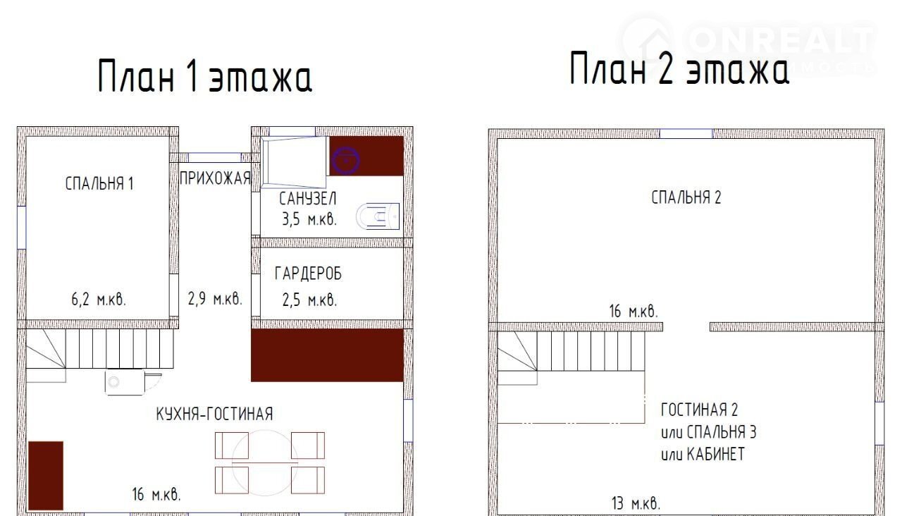 1 спальня на первом этаже, 1 на втором - более подробно есть на видео и фото с чертежом дома.