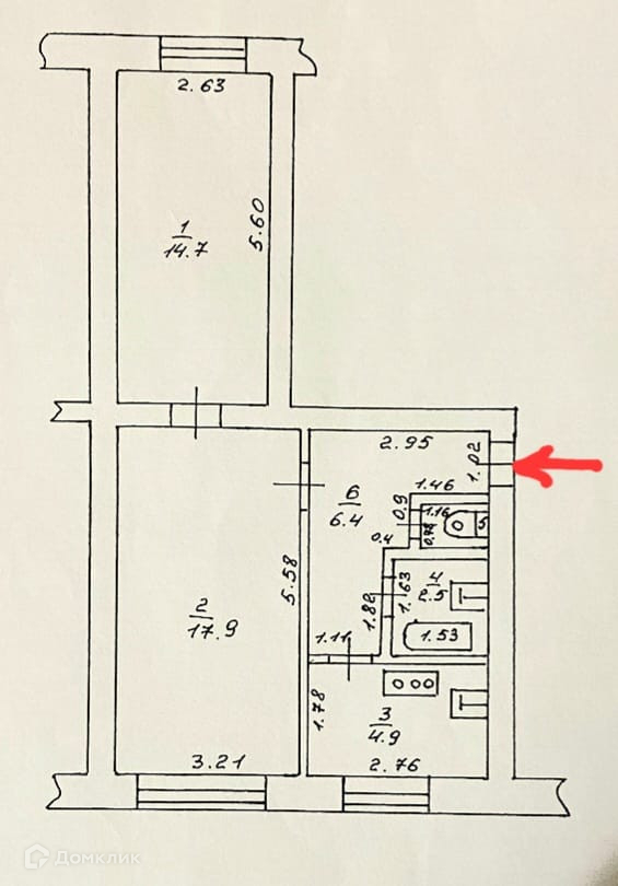 Жилая площадь 32.6 м2