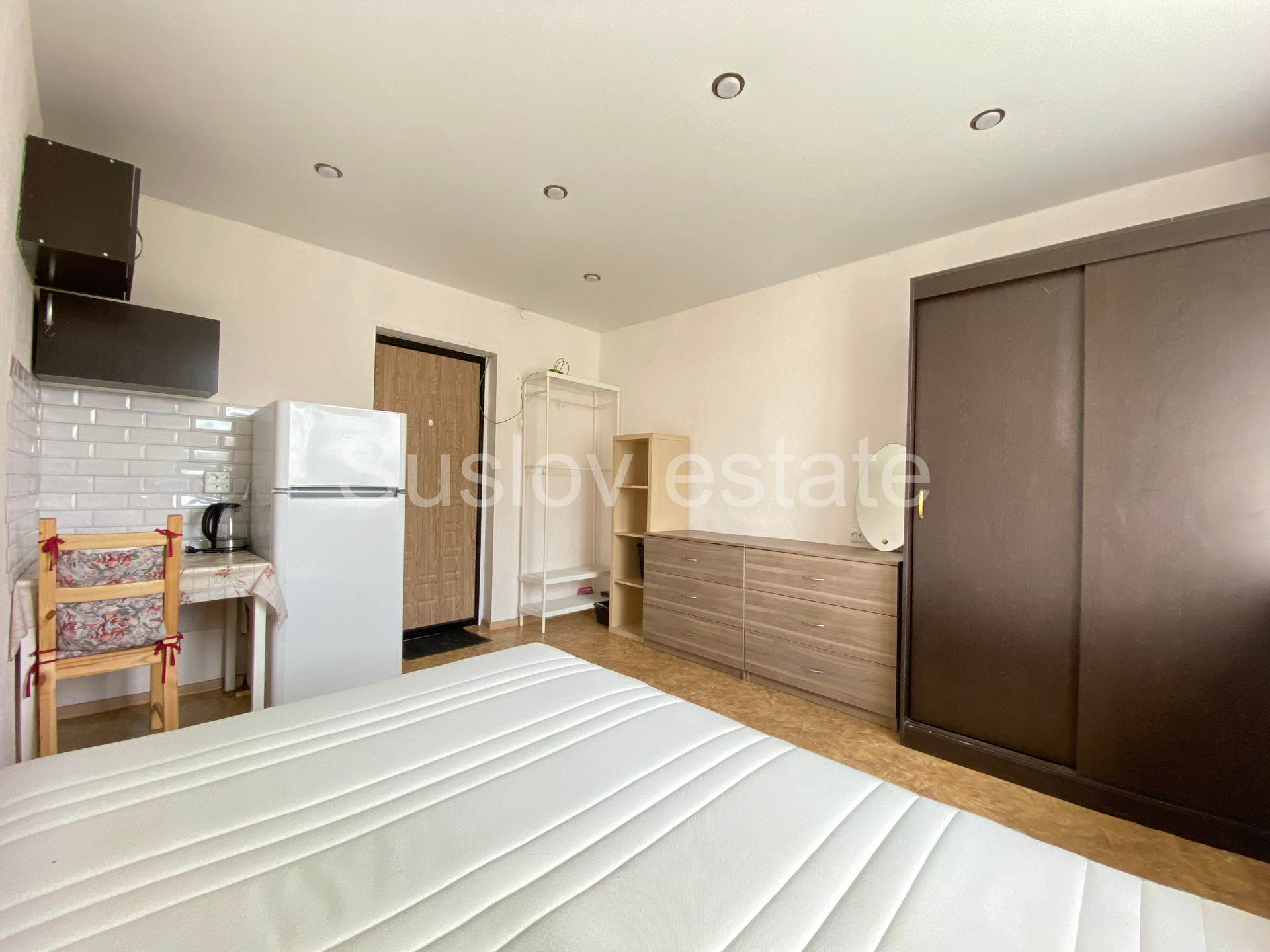 Мебель (кровать, новый матрас, шкаф, два комода, стеллаж, вешалка, стол, стул) и техника (новый холодильник и своя новая стиральная машина) останутся по Вашему желанию.
