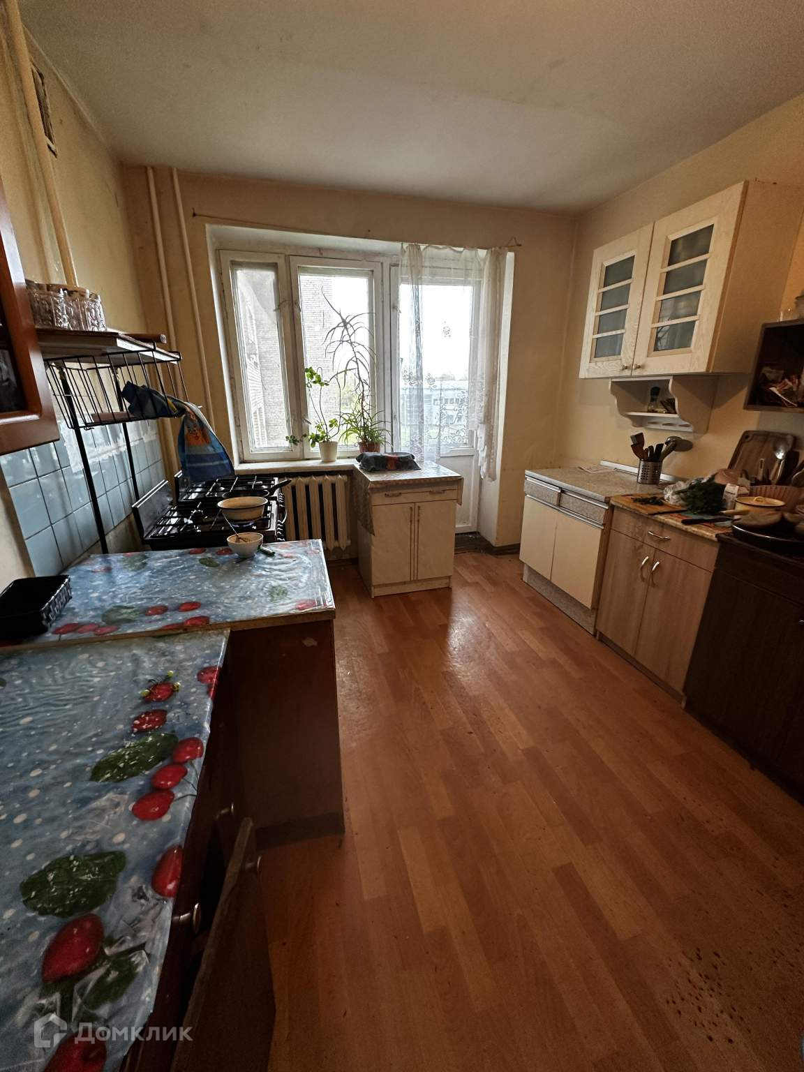На полу линолеум, балконов - нет, лоджий - нет, окна выходят во двор.
