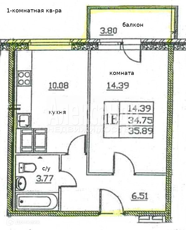 Балкон, лоджия 1 балкон