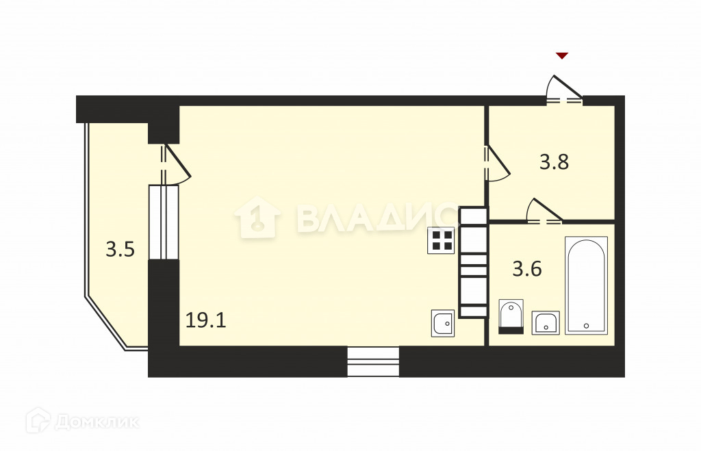 Общая площадь 26.5 м2