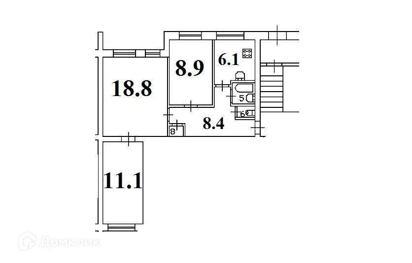 Общая площадь 56.8 кв.метров