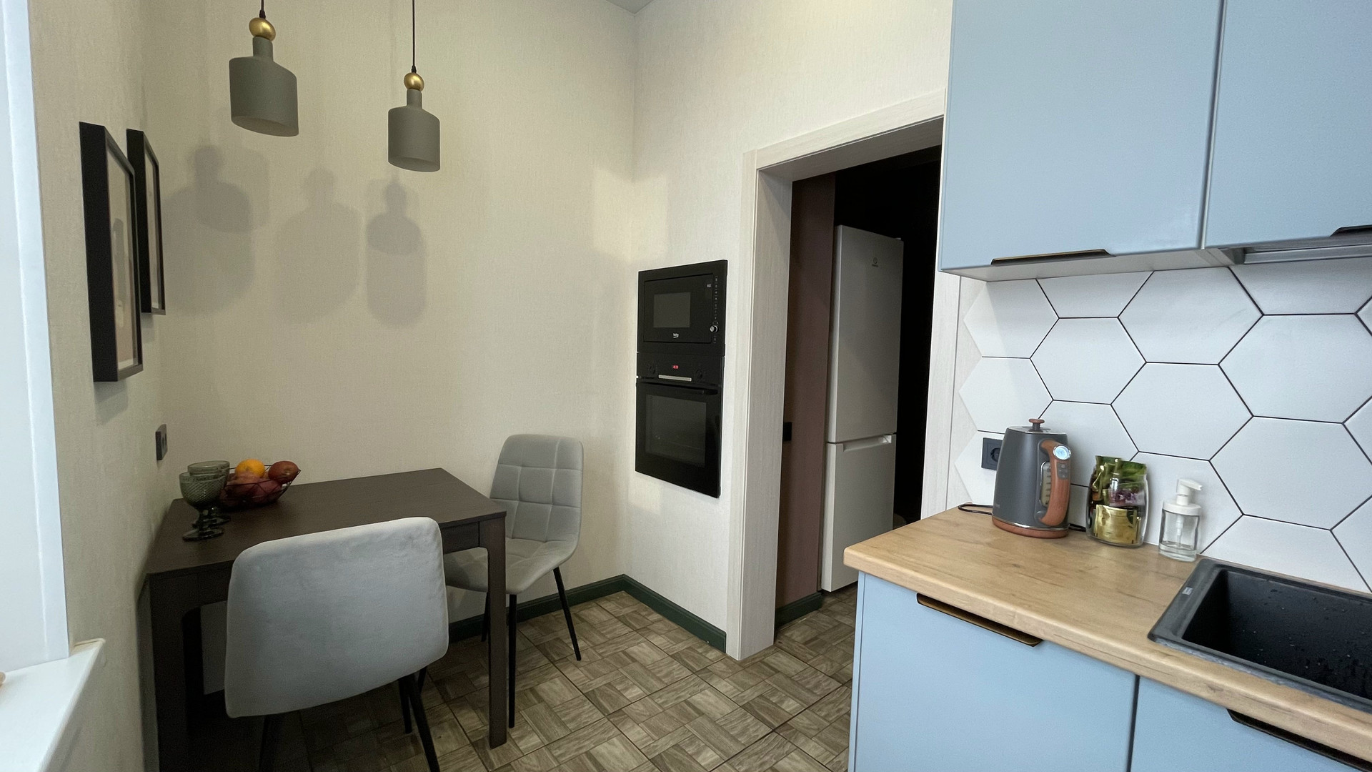 Покупателю останется в подарок встроенная кухня с бытовой техникой, в отличном состоянии, хорошего качества и встроенный шкаф-купе.