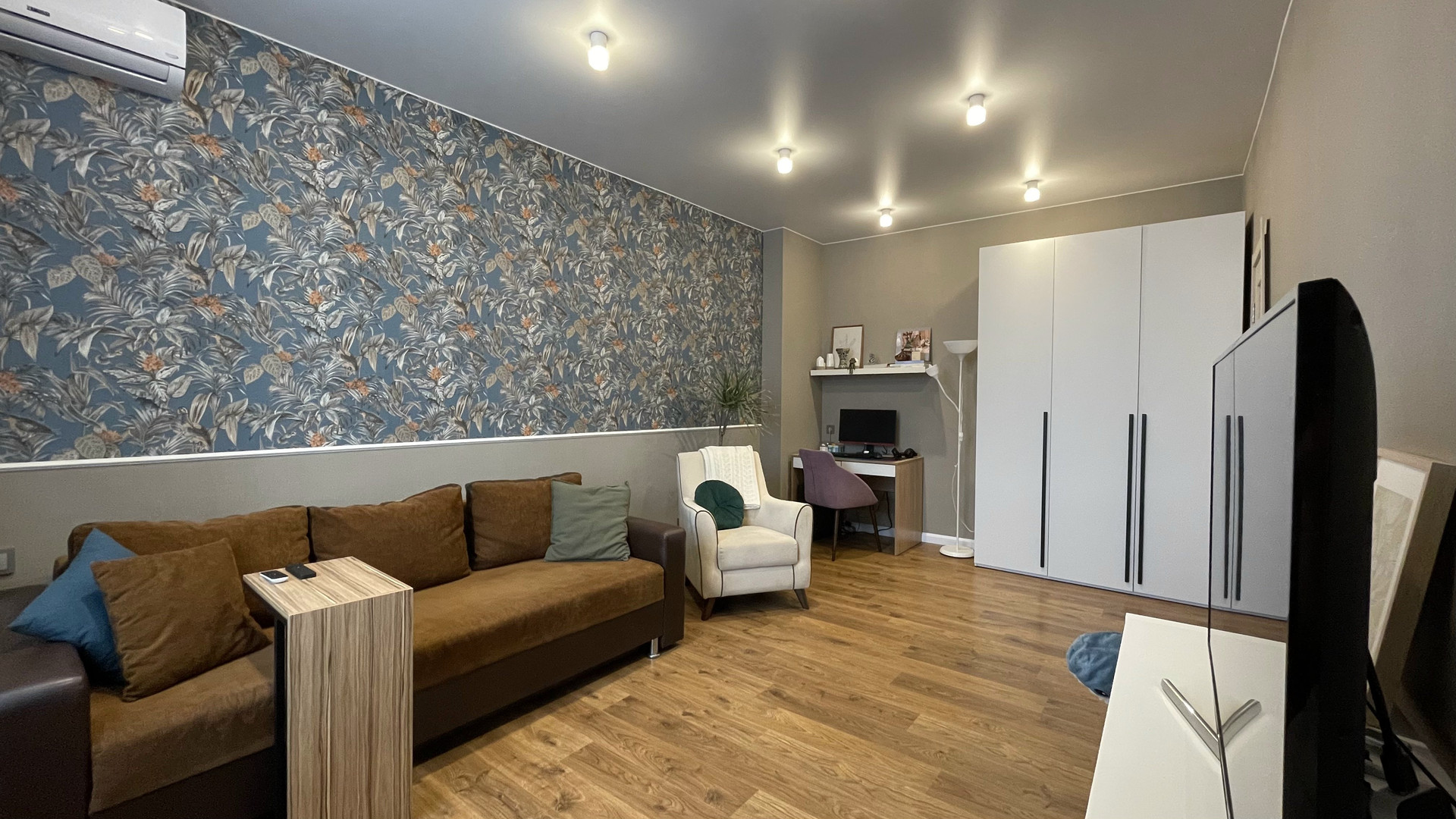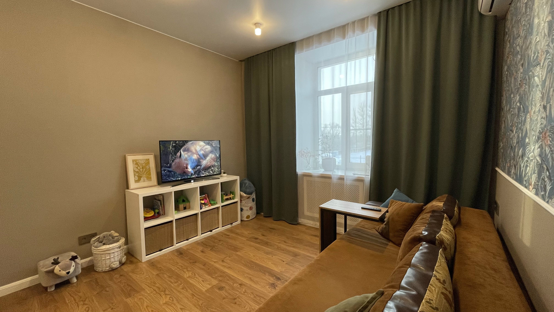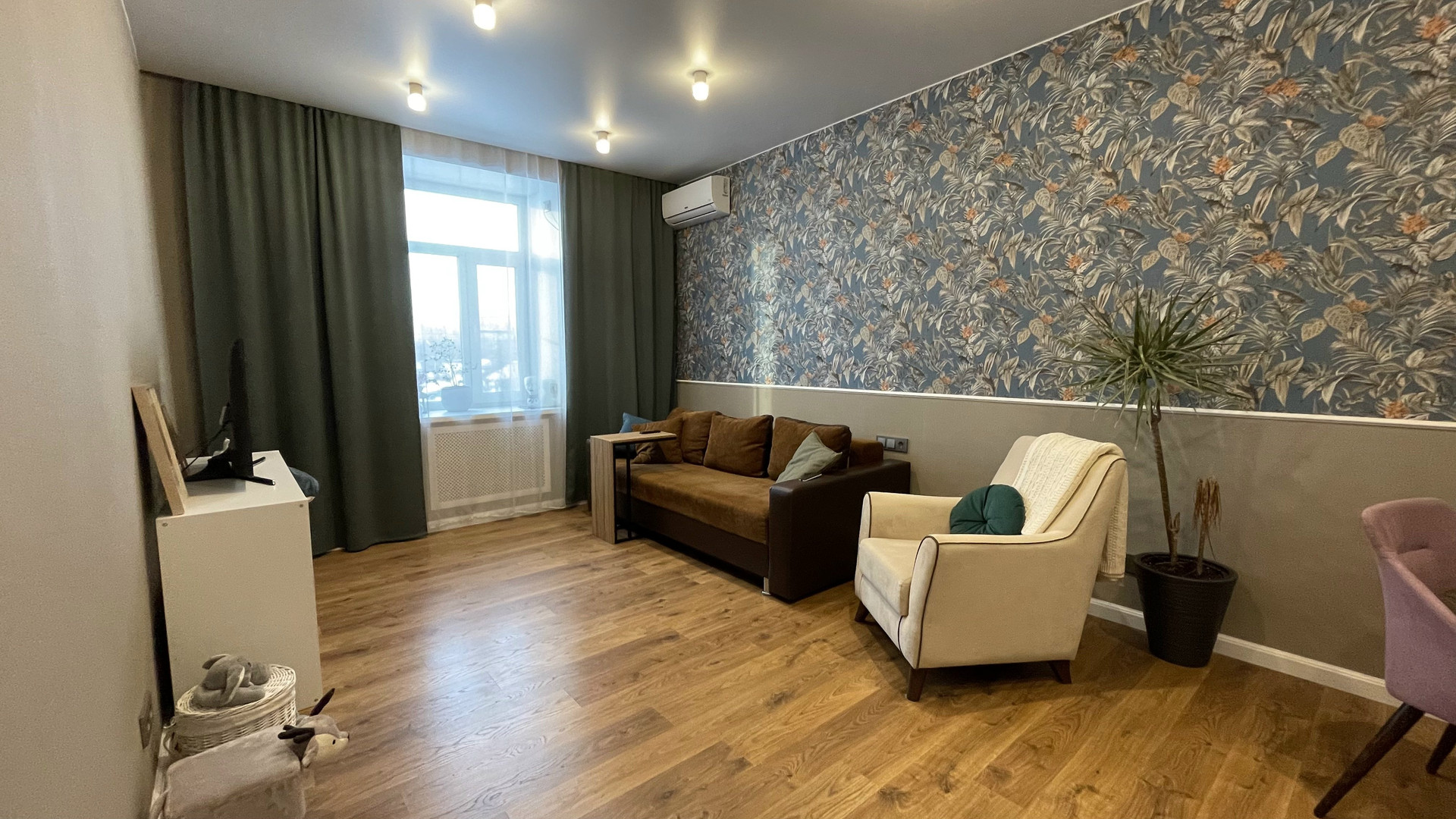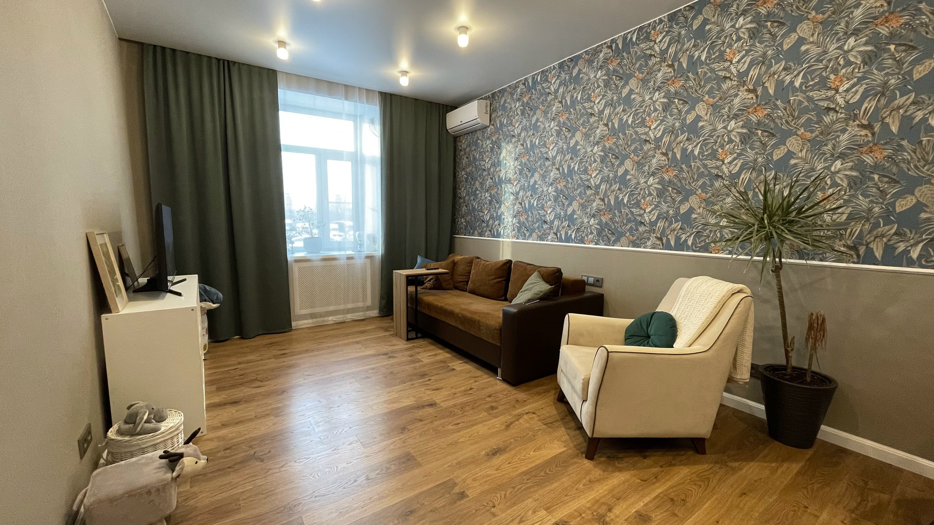Для комфортного самочувствия в летнюю жару, а также в осеннее межсезонье, когда еще не включено центральное отопление, в квартире установлен кондиционер. Его наличие согласованно с КУГИ, который также остается в подарок.