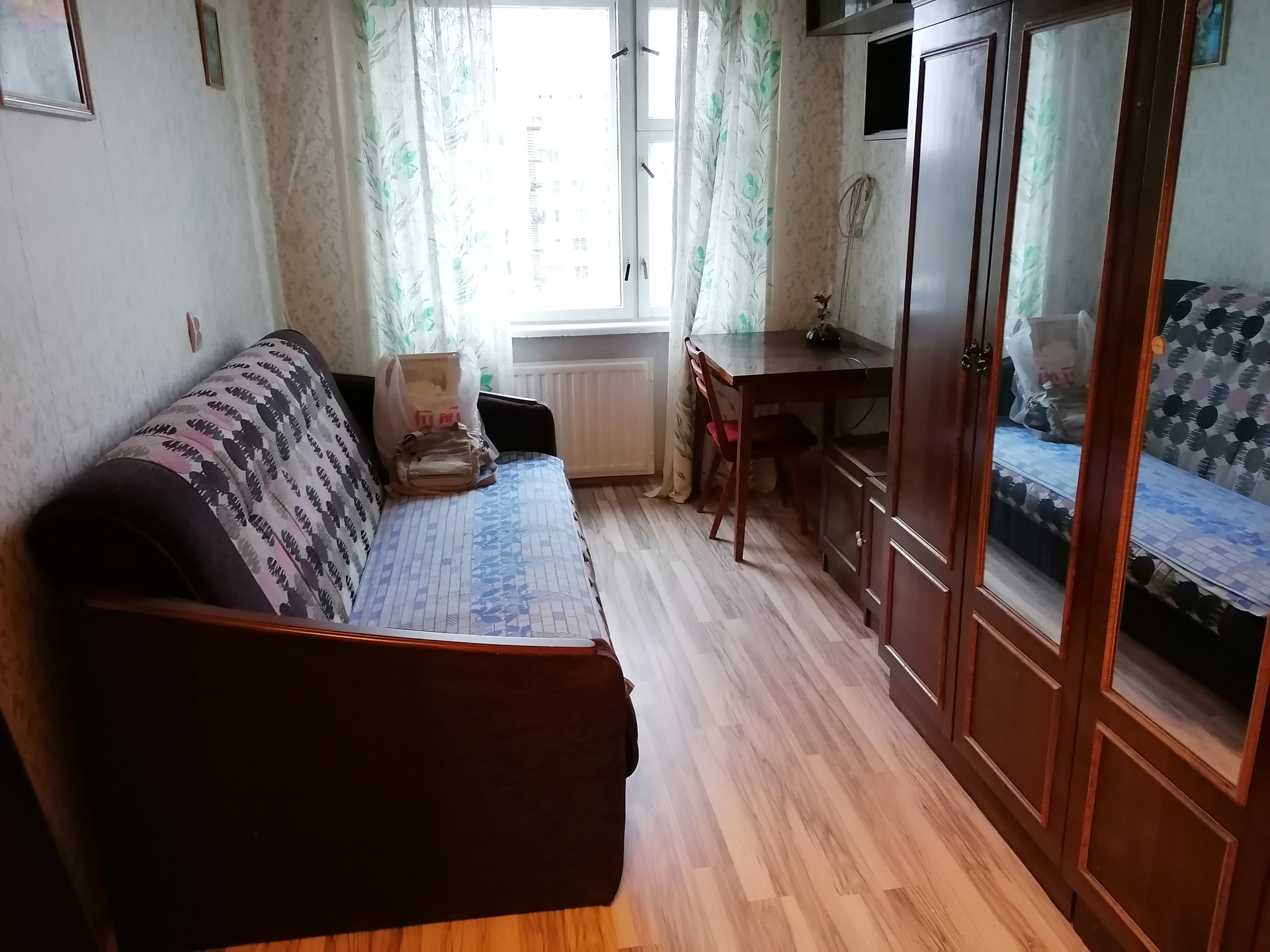 Комнаты раздельные по 10 кв.м. каждая в 3-комнатной квартире , большая комната закрыта ,не сдается.Кухня 7 кв.м. Раздельный санузел.Большая прихожая.Балкона нет.