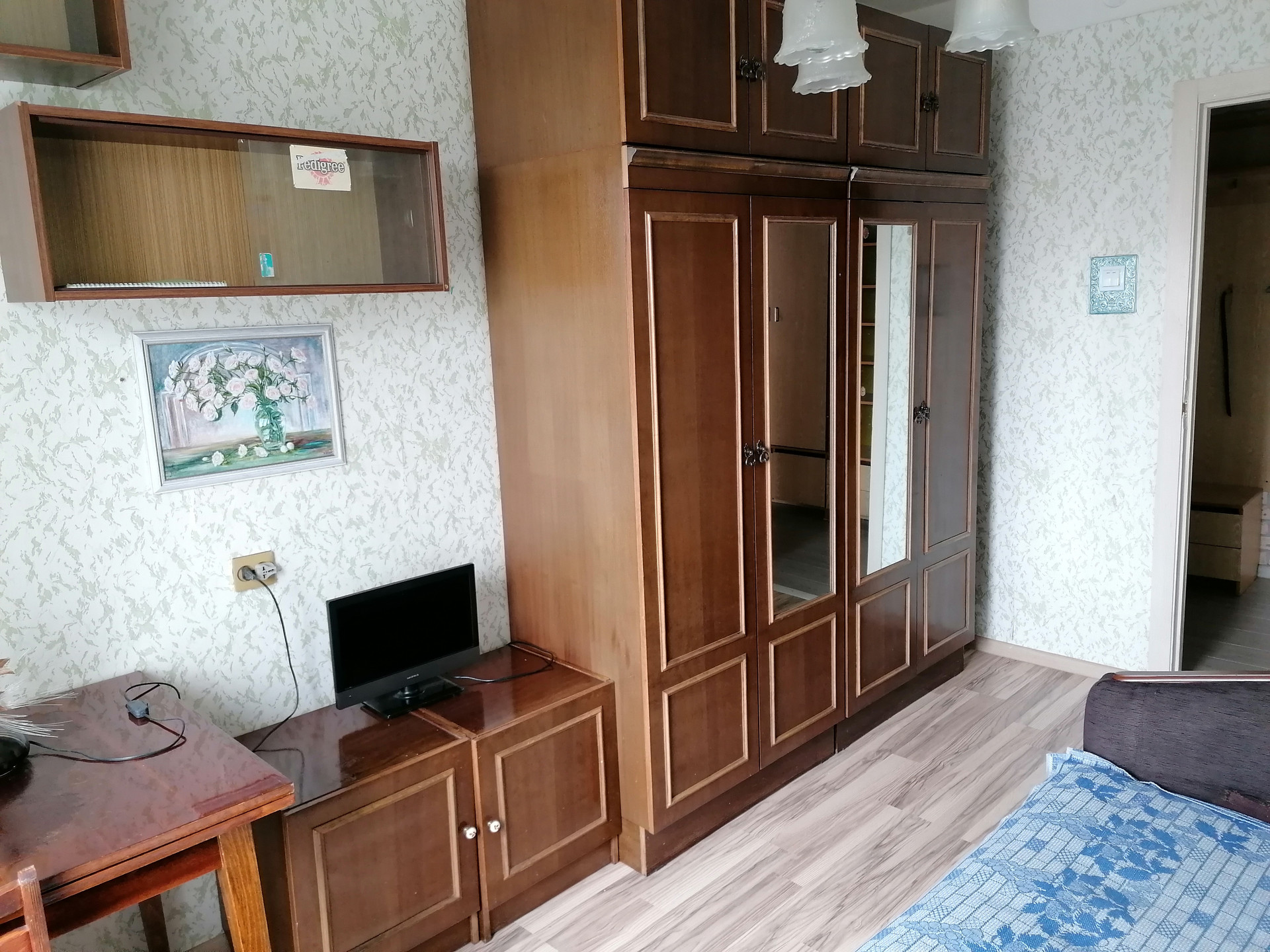 Есть вся необходимая мебель и бытовая техника:2 дивана,кровать,шкаф-прихожая,кухонная мебель,столы,холодильник,стиральная машина.