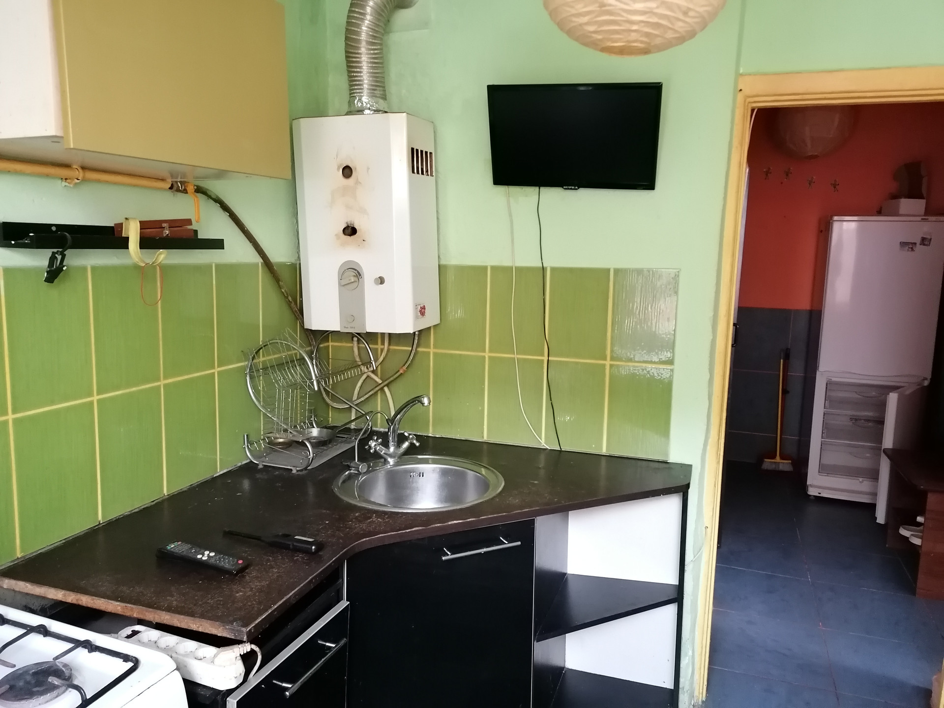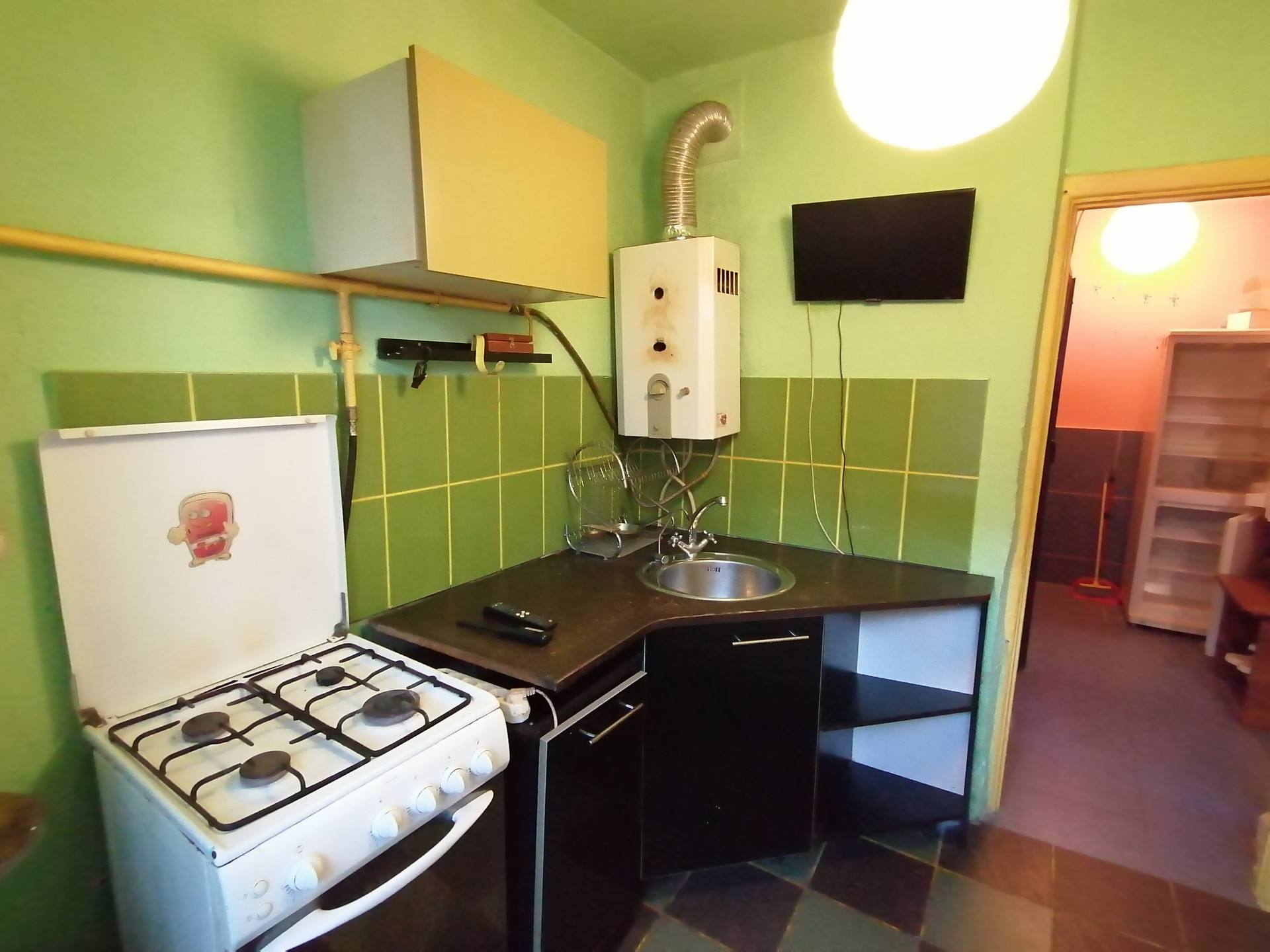 В квартире вся необходимая мебель и бытовая техника: кухонная мебель,диван,кровать,шкаф,тумба,стол,стулья,холодильник,телевизор.
