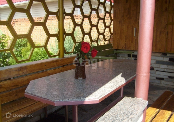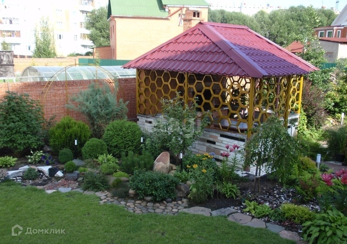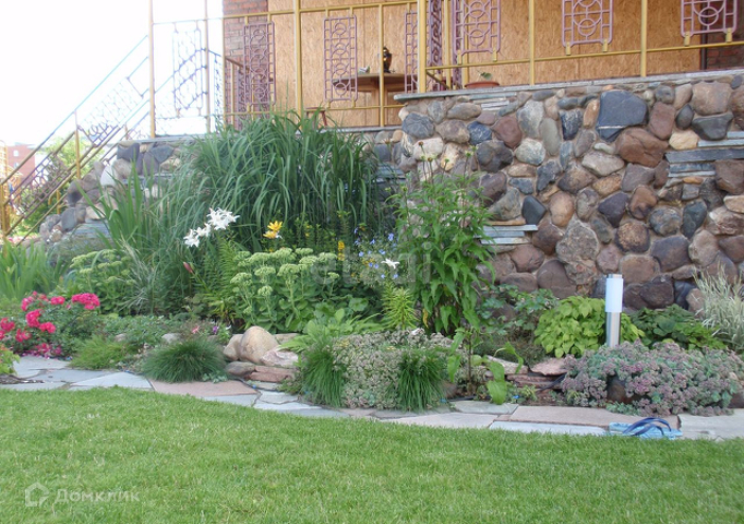 Большая летняя прихожая, открытая веранда. Барбекю, баня, теплица, есть теплая стайка. Дорожки, водопады, горки, водоемы сделаны из мрамора и гранита.