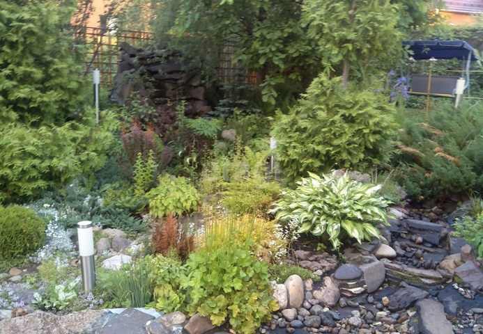 Выполнен профессиональный дорогостоящий ландшафтный дизайн.