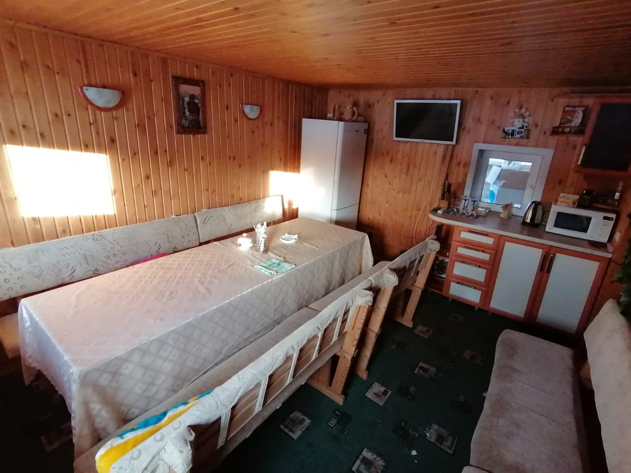 На территории имеется русская баня: комната отдыха (кухонный гарнитур, скамейки, 2 стола), помывочная (скамейки и обливное ведро), парилка, веранда.