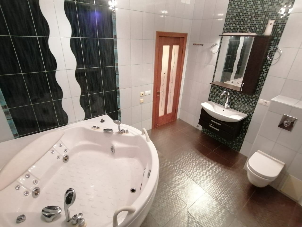 2 этаж: холл, 2 комнаты свободной планировки, спальня с просторным застекленным балконом и встроенным шкафом, кабинет, санузел (с большой ванной).