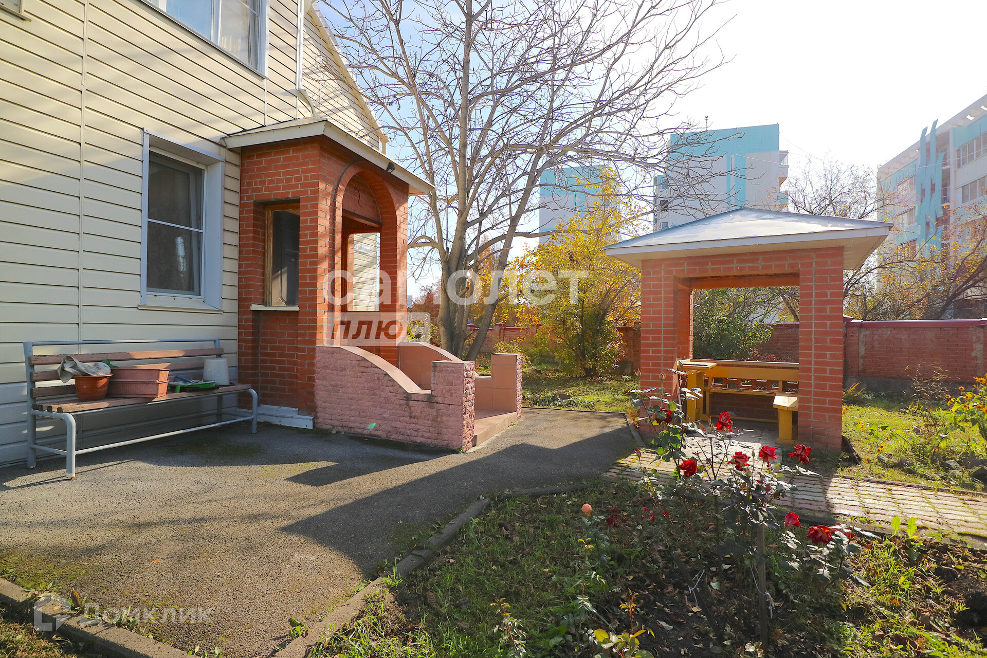 Во дворе большая асфальтированная территория.