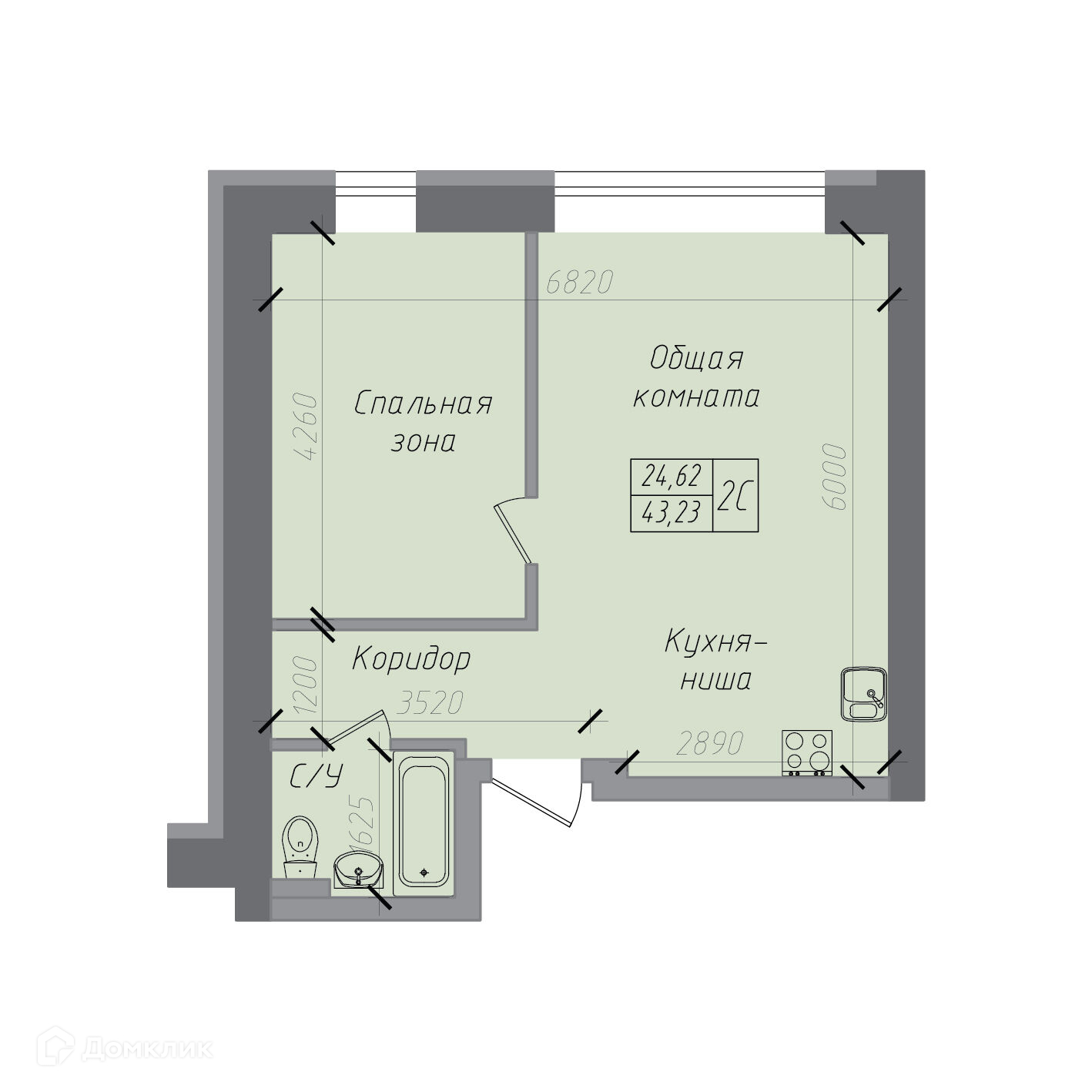 Общая площадь 43.23 м2