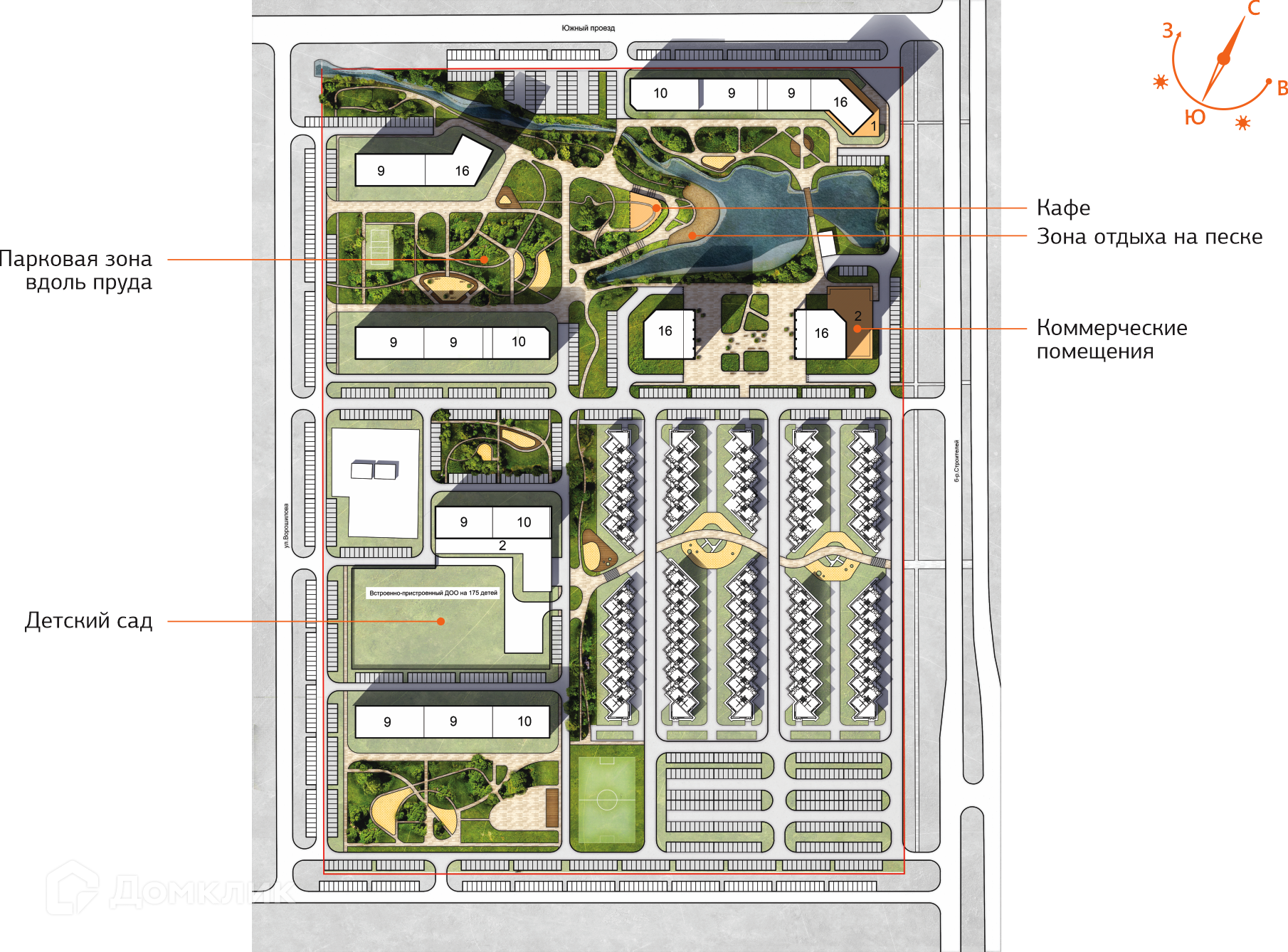 •соединен с прогулочной зоной Бульвара строителей