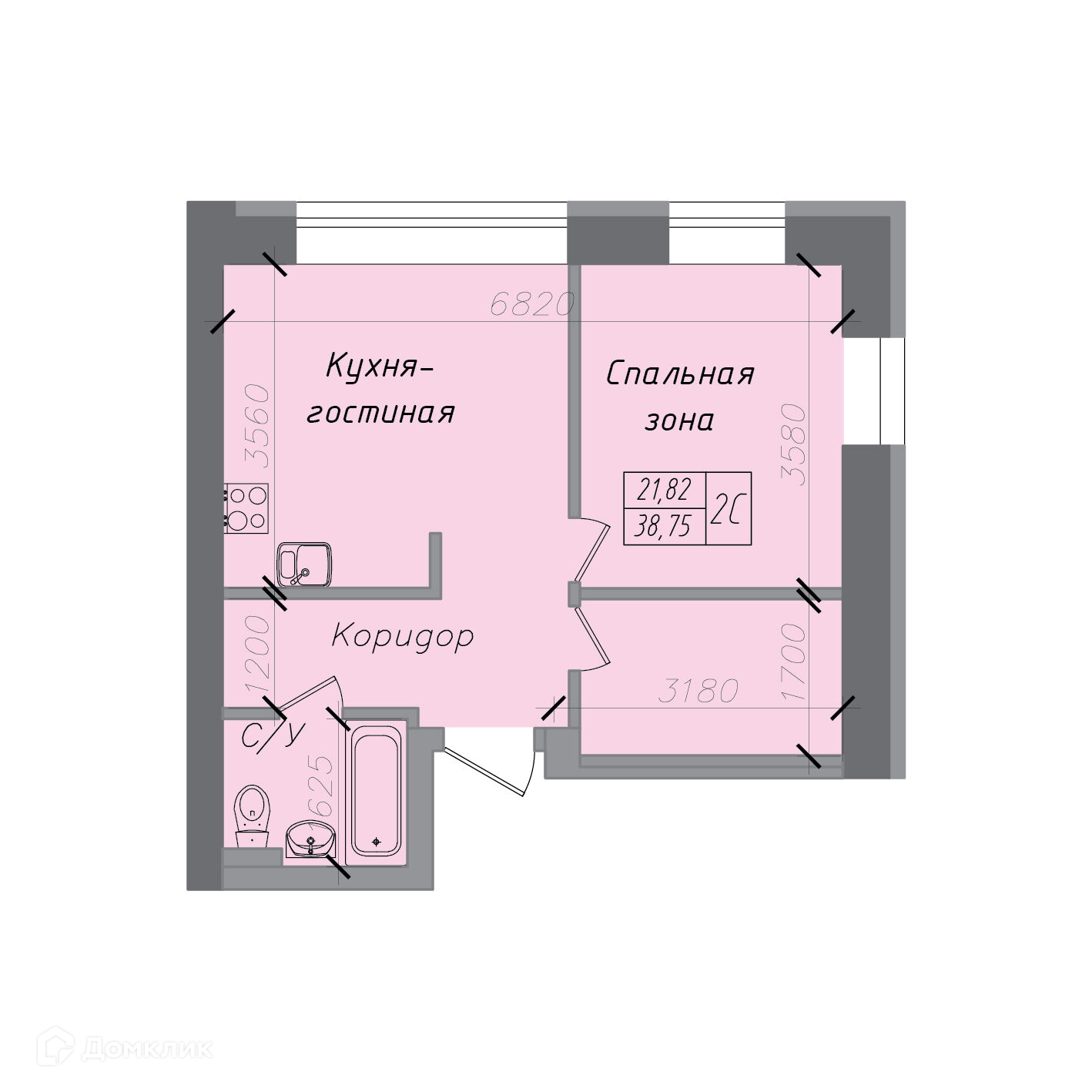 Общая площадь 38.75 м2
