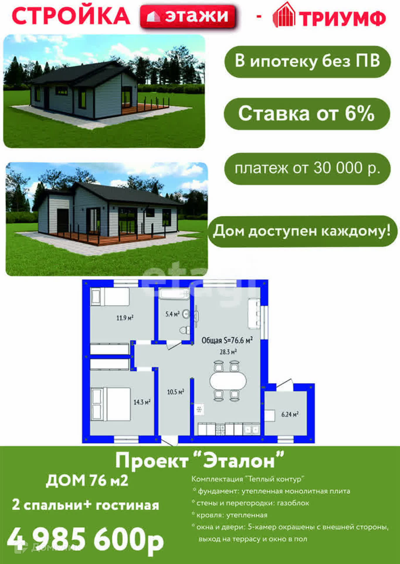 2. ⁠дом будет построен из тех материалов, которые вы выберете и той планировки, которая вам понравится. Внешнюю и внутреннюю отделку можно сделать любую по вашему пожеланию.