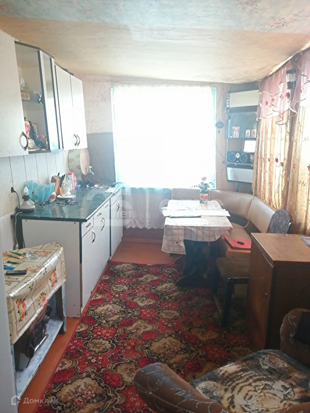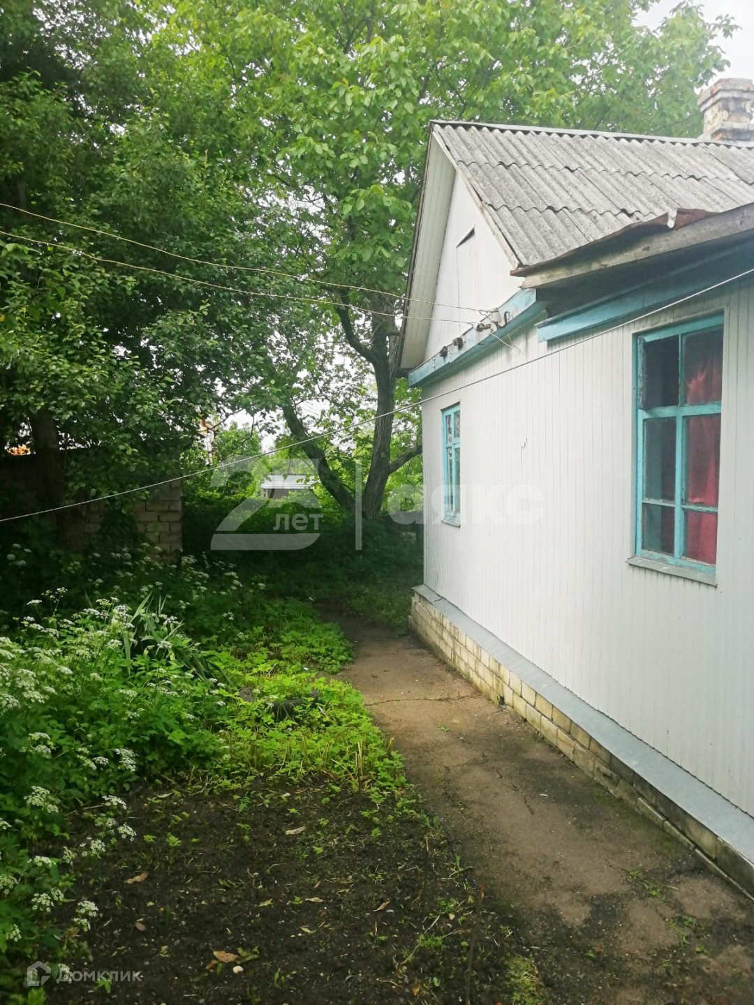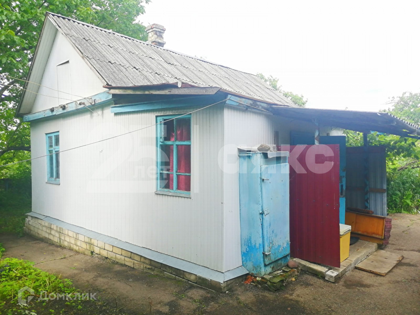 Дом саманный, обшит пластиком. Хоз. постройки, баня.