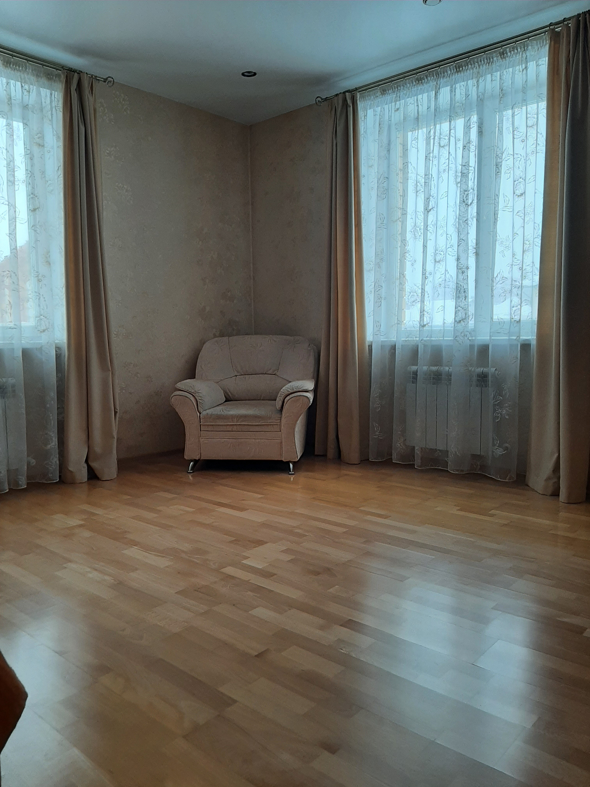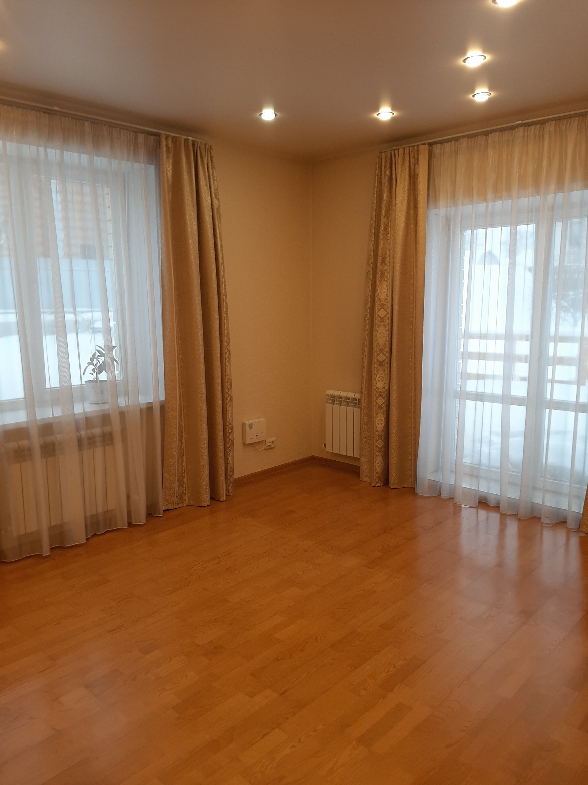 Вторая половина дома содержит на первом этаже: комнату 29,5 кв.м, кухню – 9,5 кв.м и ванную комнату – 4,5 кв.м (с/у, душевая кабина). Эти помещения находятся за отдельной дверью.