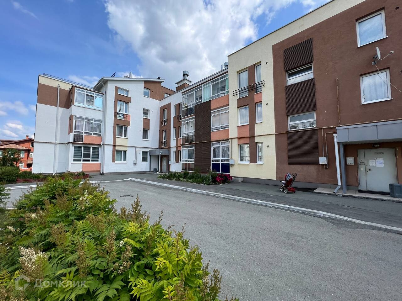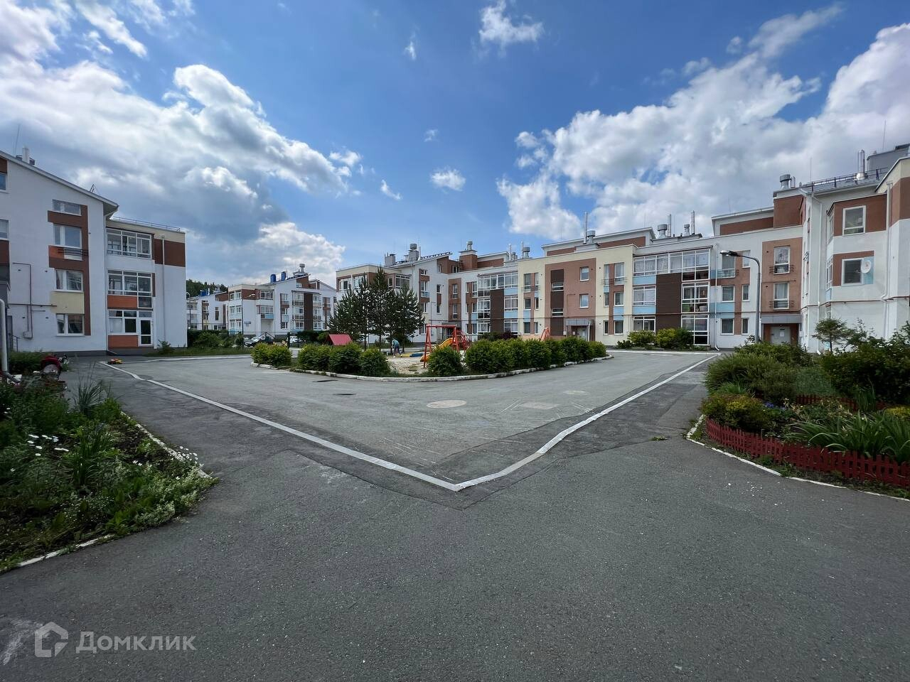 Закрытый двор тихий и уютный, оборудованный детской площадкой.
