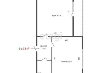 Общая площадь: 32 м2