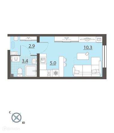 Жилая площадь 10.3 м2