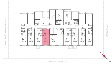 Общая площадь 21.6 м2