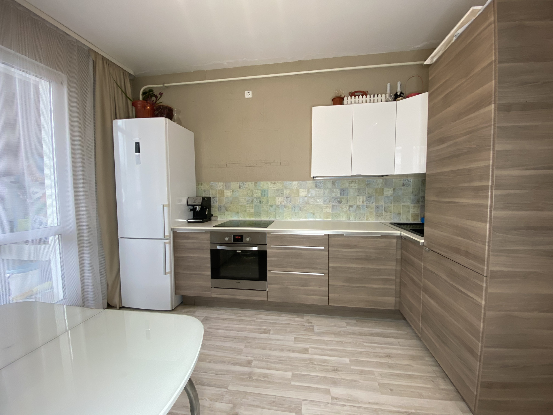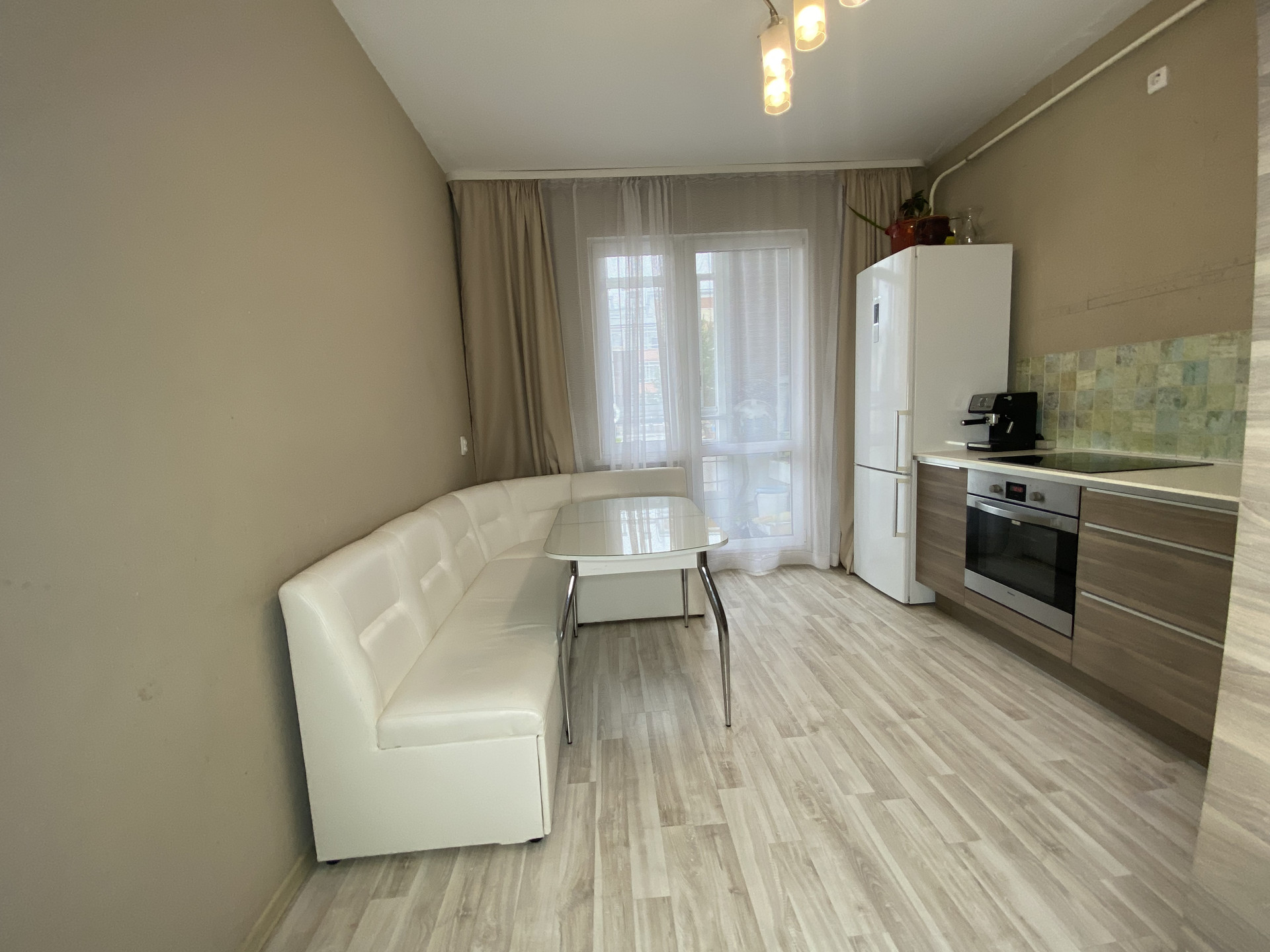 В квартире ремонт от застройщика, в ванной комнате сделан капитальный ремонт и установлен тёплый пол. Остаётся полностью укомплектованная кухня со встроенной техникой , кожаный диван и стол. В квартире установлен индивидуальный котёл, значит вода есть всегда , так же котёл позволяет самостоятельно регулировать температуру в квартире  летом и зимой. Низкие коммунальные платежи(до 3500₽).