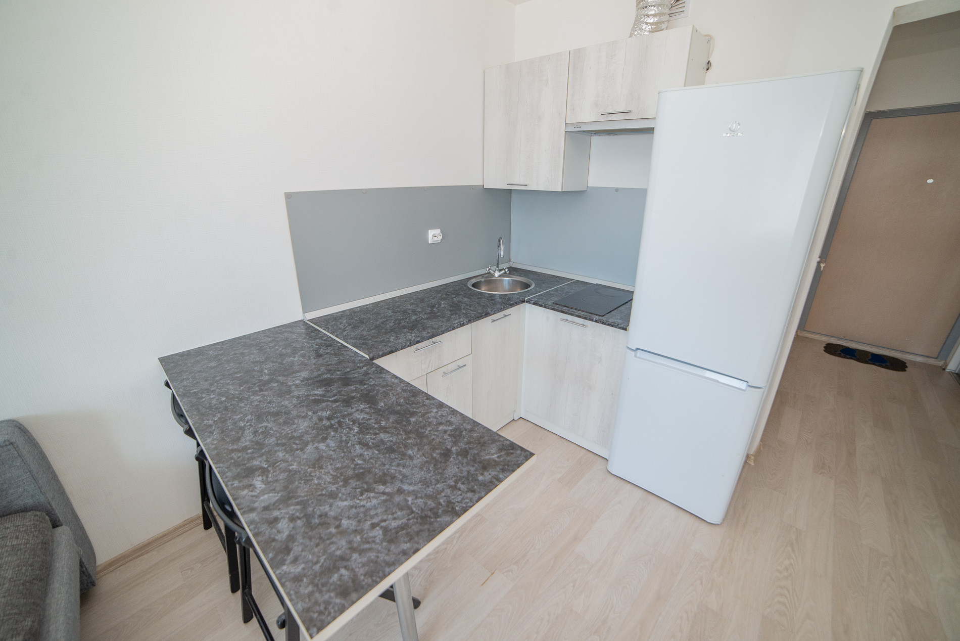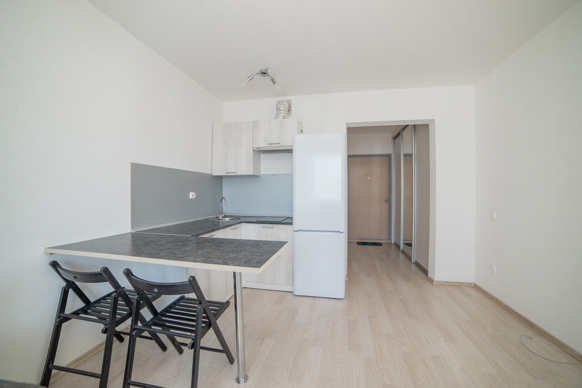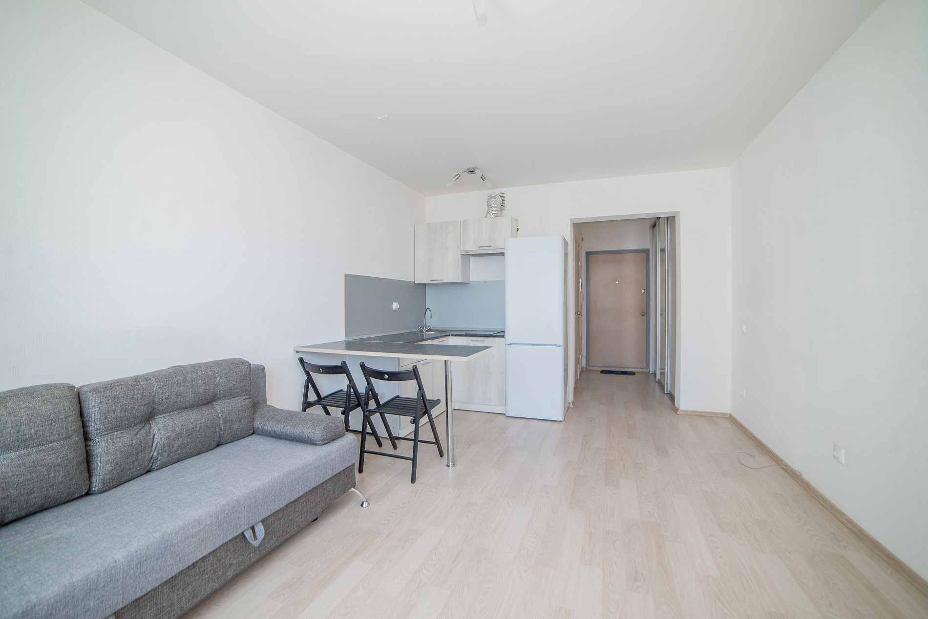 Квартира освобождена и полностью готова к вашему переезду. В ней есть всё для комфортной жизни: кухонный гарнитур, удобный диван-кровать, холодильник и даже стиральная машина. В коридоре имеется вместительный шкаф-купе.