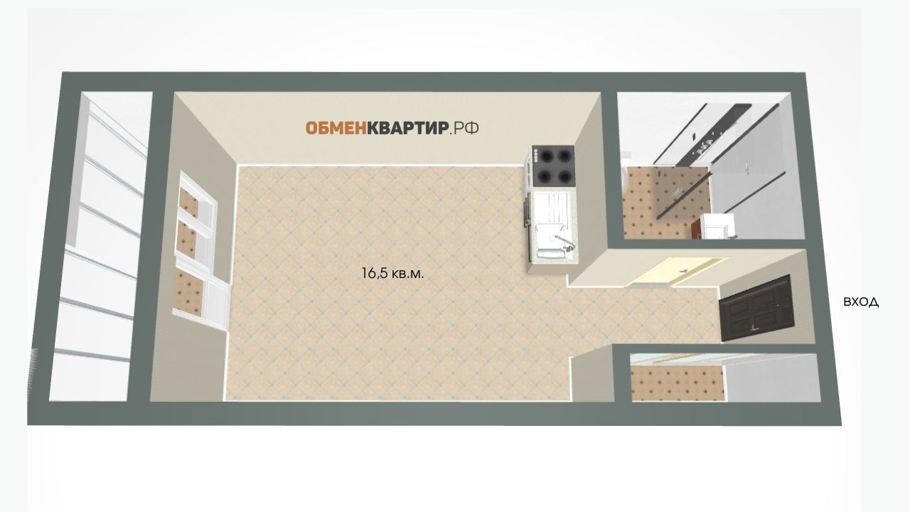 Жилая площадь 16.5 м2
