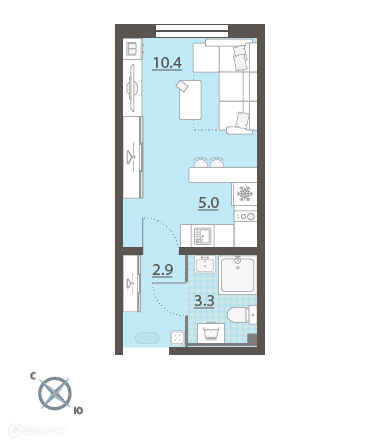 Студия-это современный формат планировки, сочетающий в себе компактность и функциональность. В квартире с легкостью можно найти место для всего необходимого для комфортного проживания.