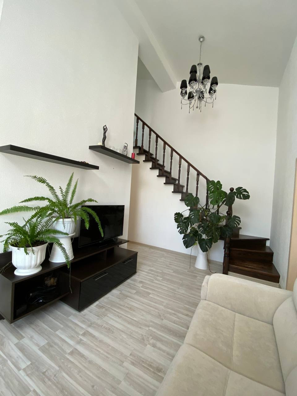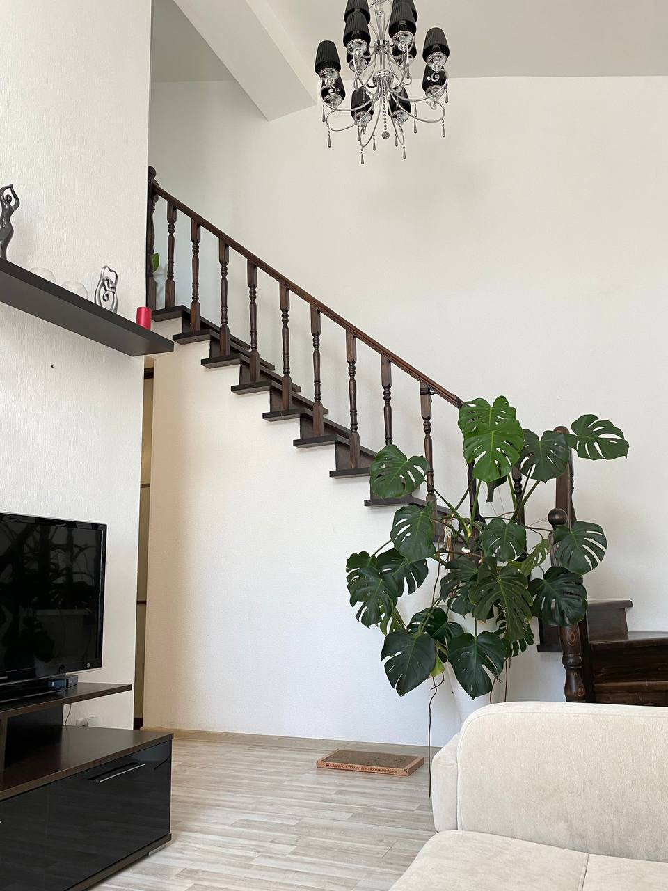 На первом уровне расположена кухня, гостиная, роскошная спальная, санузел и просторная лоджия, утеплена и можно использовать как кабинет или доп комнату. На втором уровне спальня + гардеробная. В квартире сделан качественный ремонт.