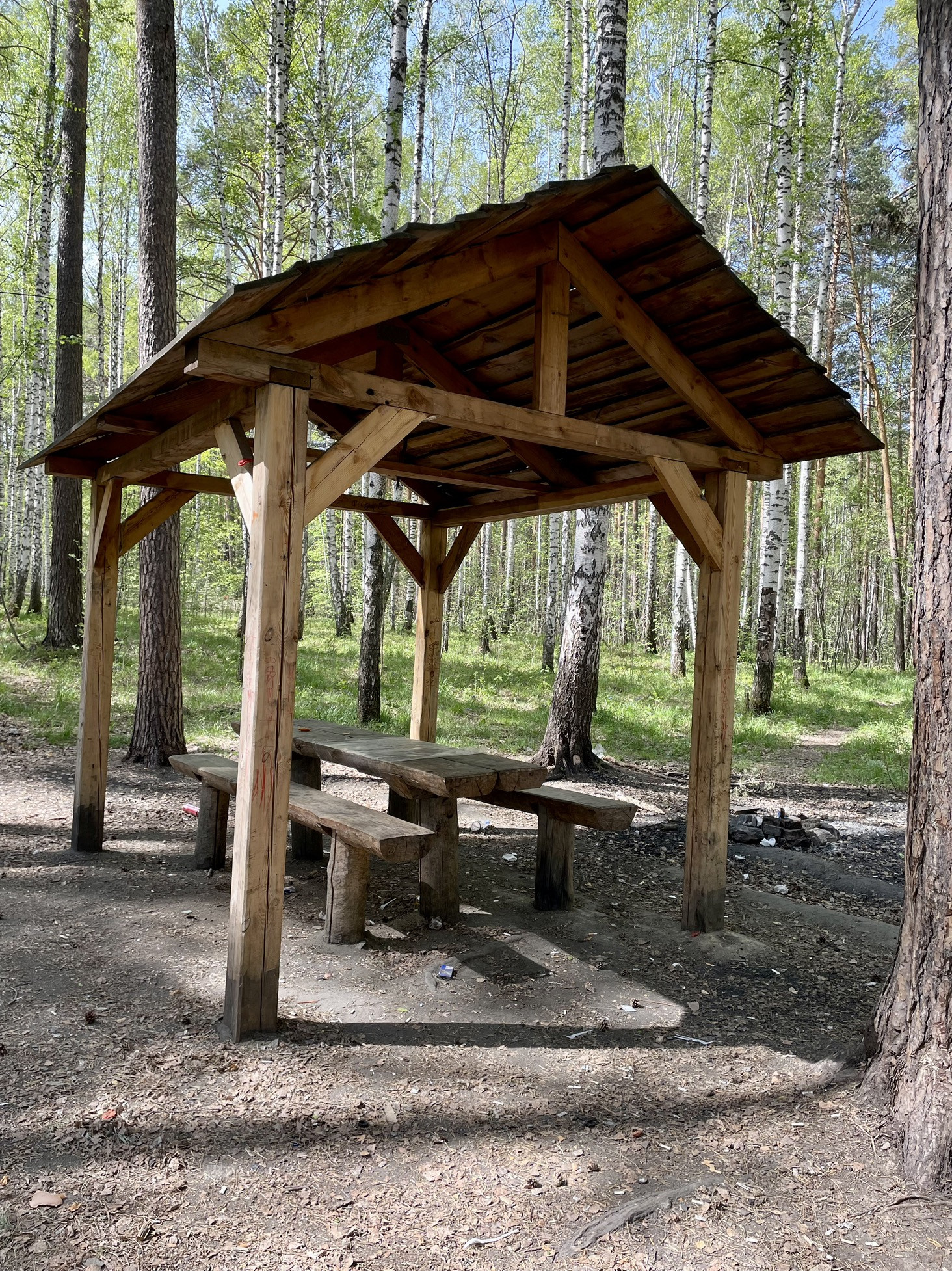В шаговой доступности не просто парк, а настоящий сосновый лес с беседками, мангальными зонами и тропой здоровья!