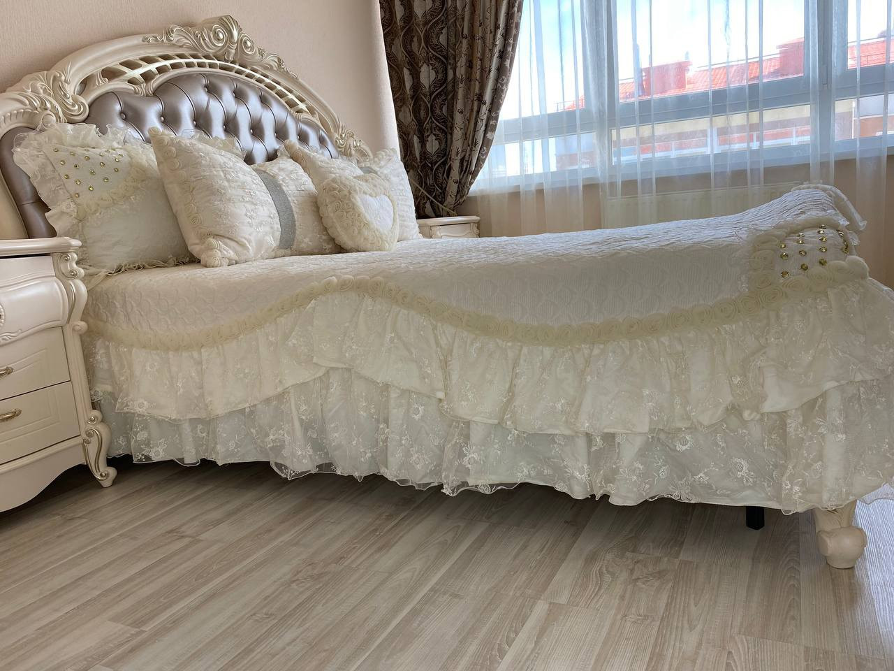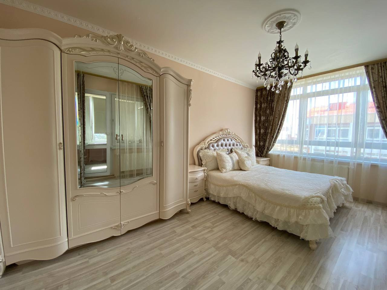 Остаётся вся мебель, кухонный гарнитур с качественной встроенной техникой.