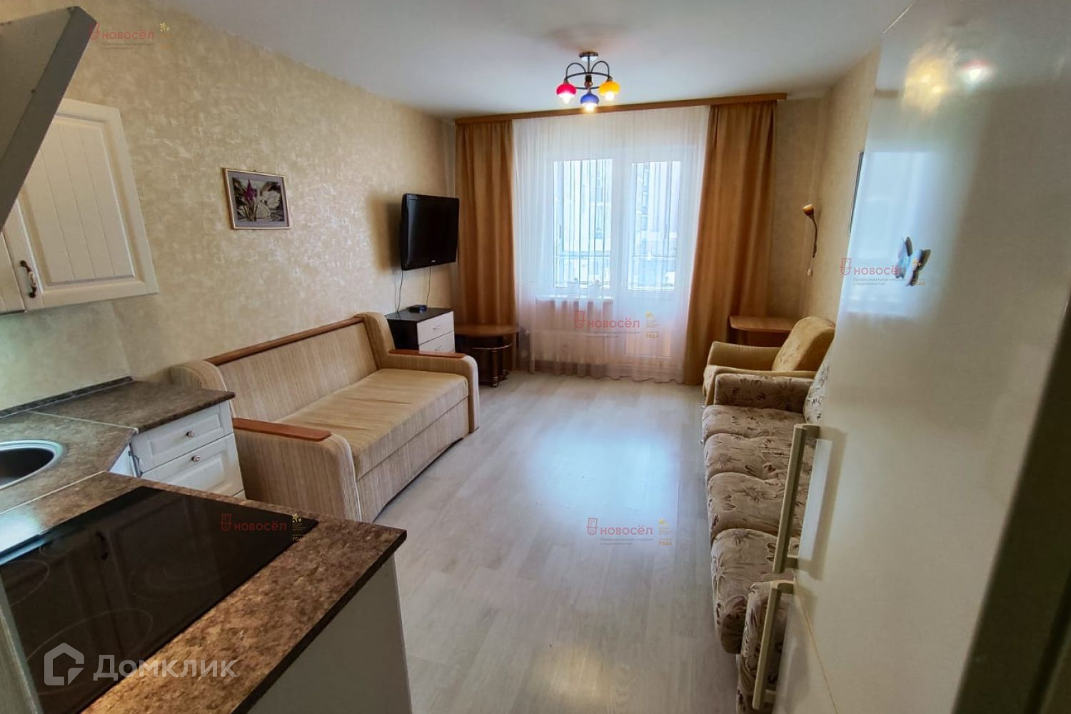 В квартире остается кухонный гарнитур с варочной поверхностью, духовкой и вытяжкой, шкаф-купе в прихожей.