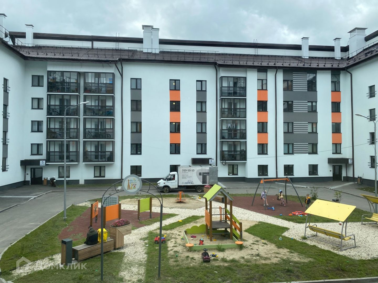 - Двор с огражденной территорией без машин.