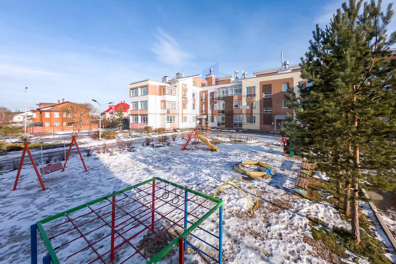 - Закрытая территория оборудована детской площадкой. Двор без машин.