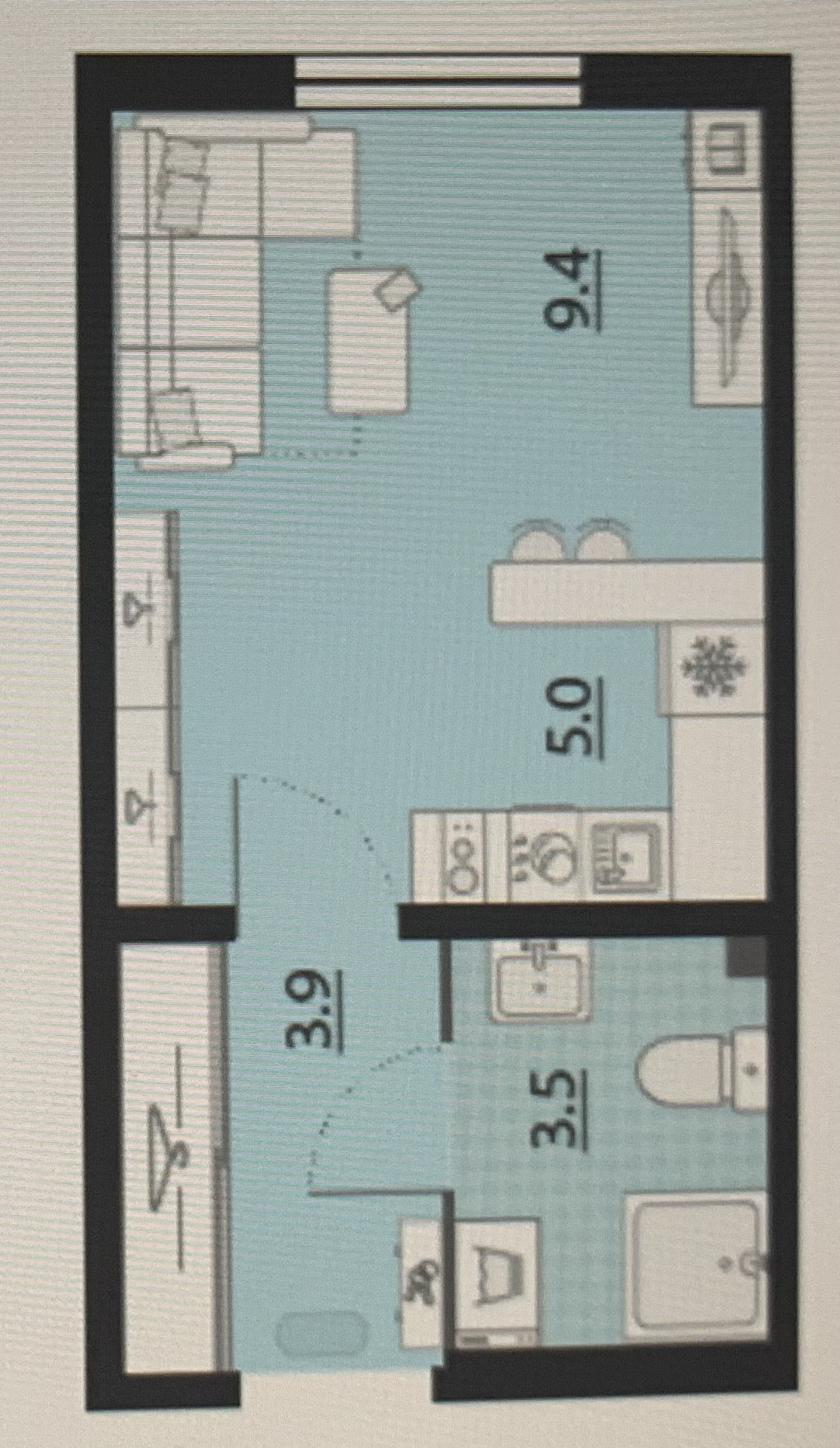Общая площадь 21 м2