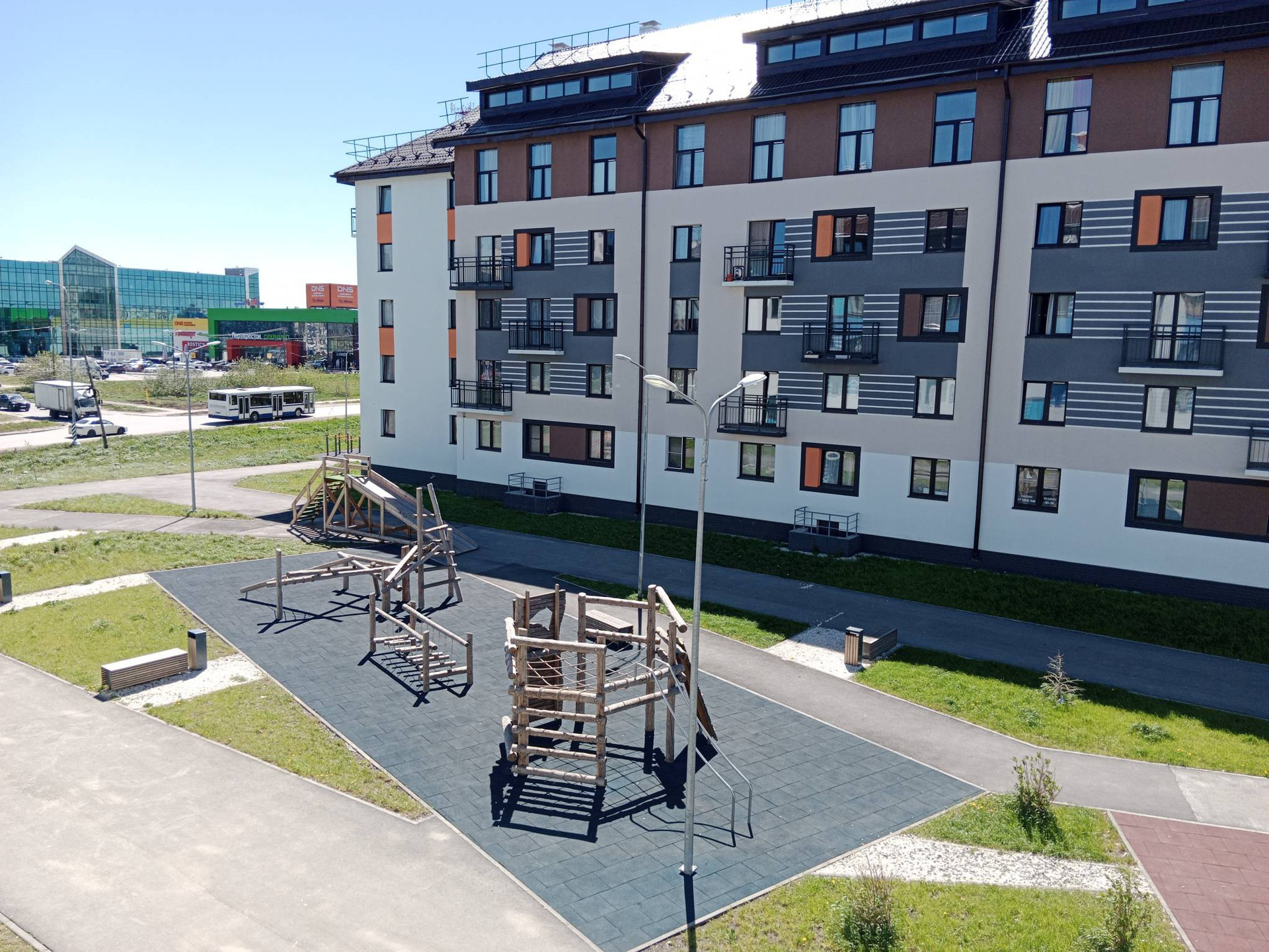 Двор закрытый, без машин. Для автомобилей есть большая бесплатная парковка возле дома. Две современные детские площадки. Чистые просторные подъезды.