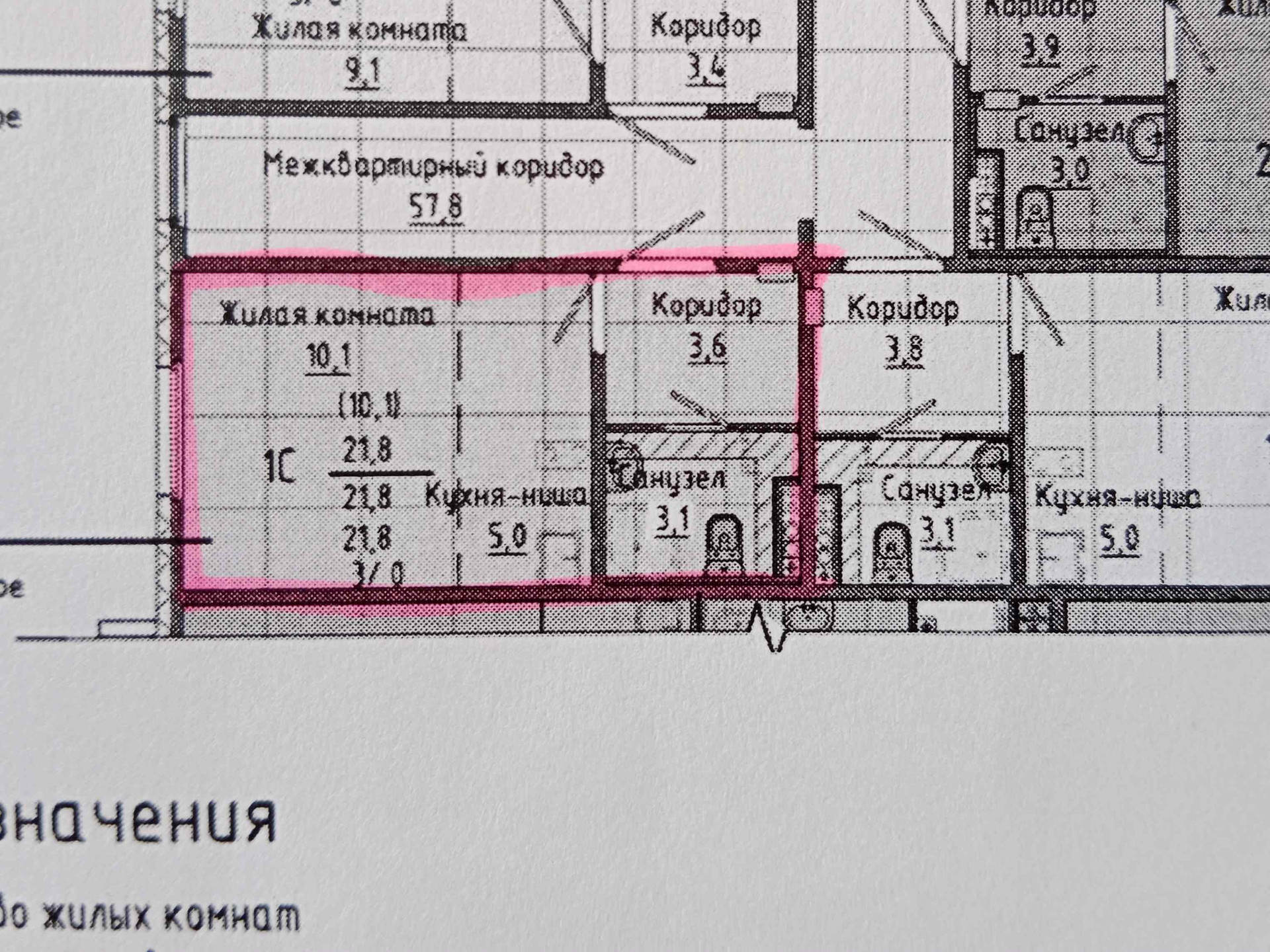 Общая площадь 21.8 м2