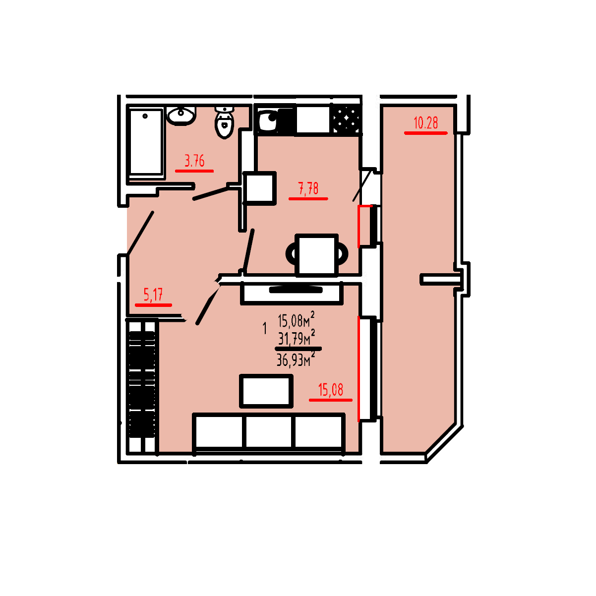 Общая площадь 36.8 м2