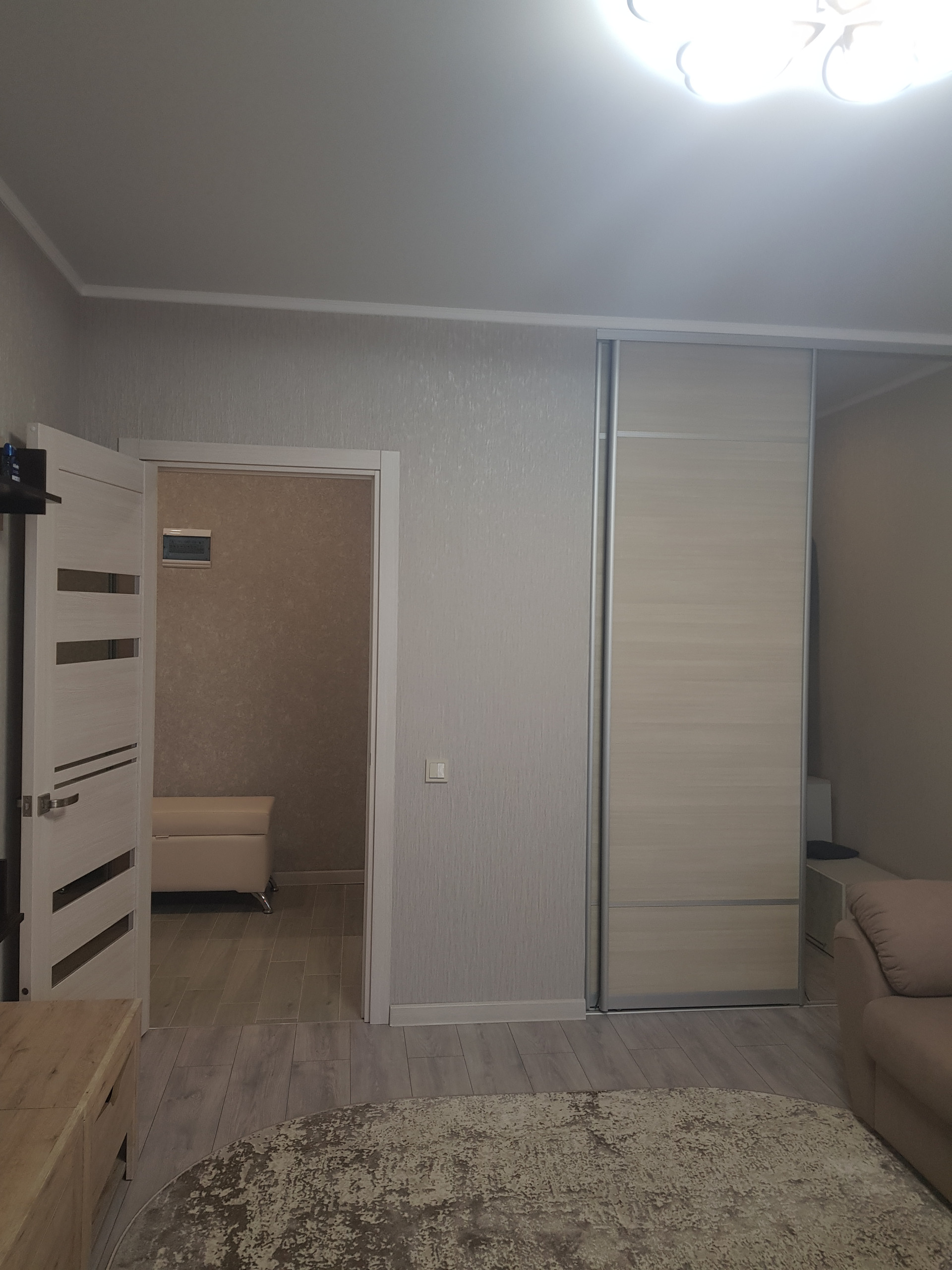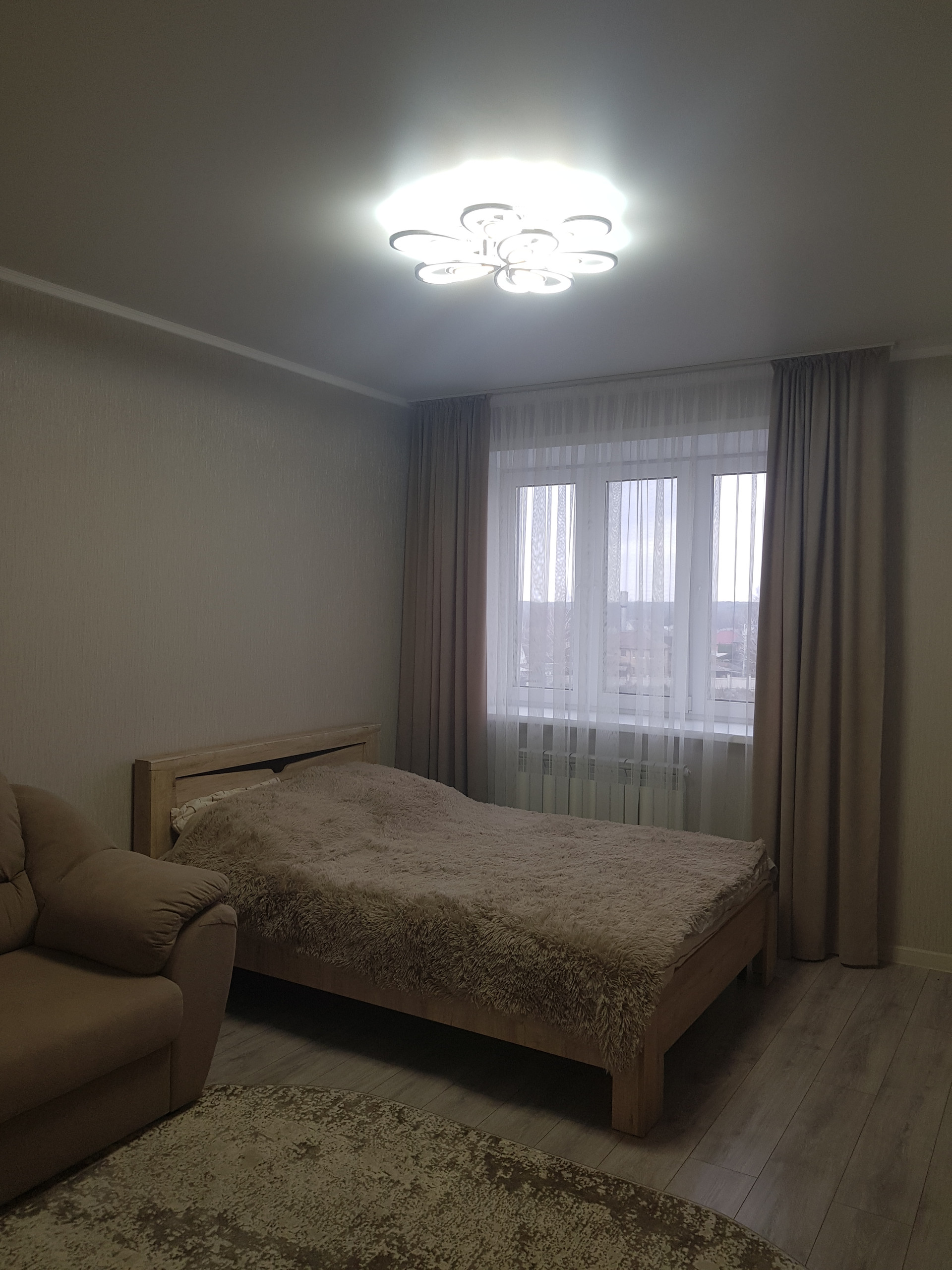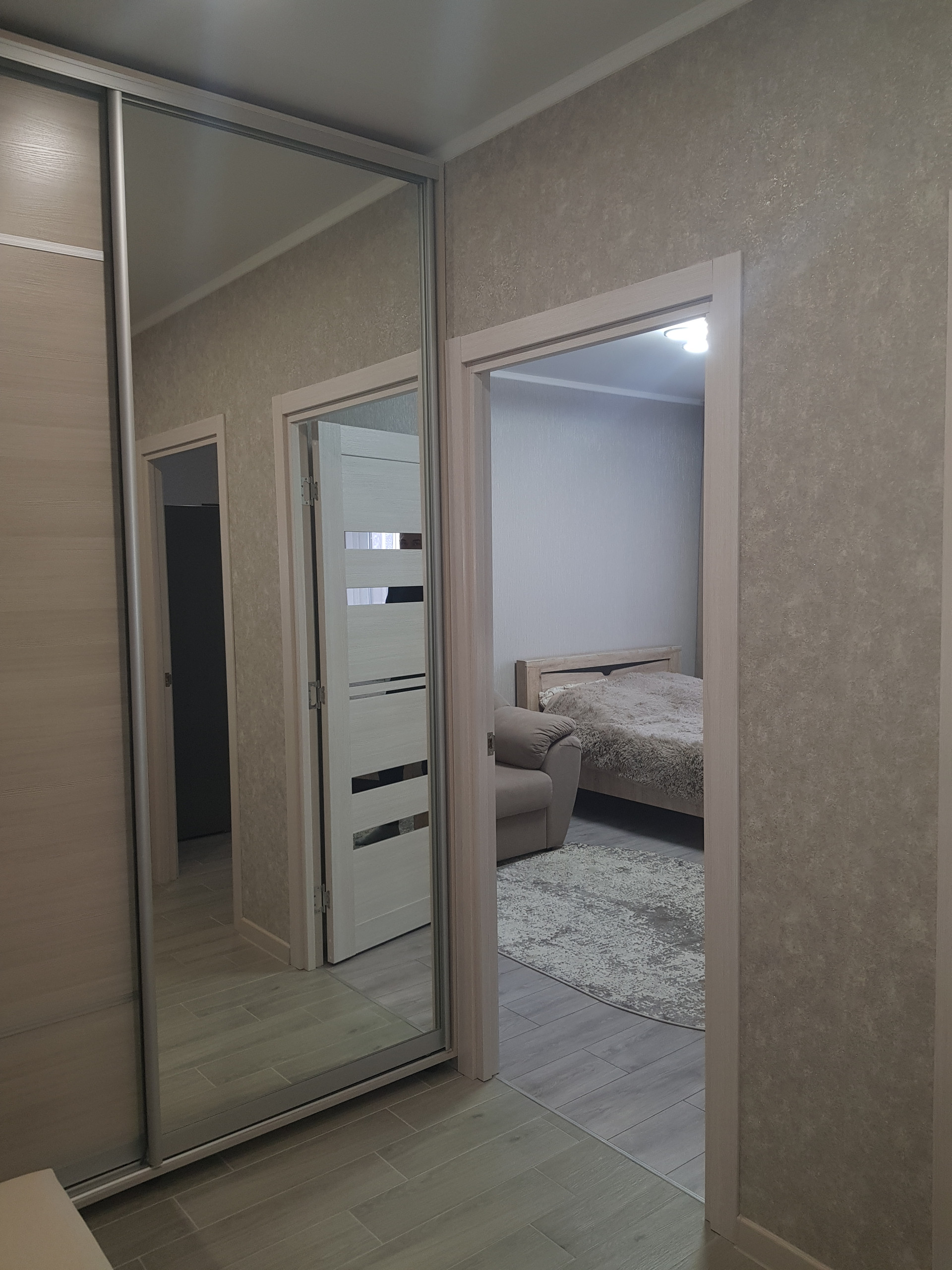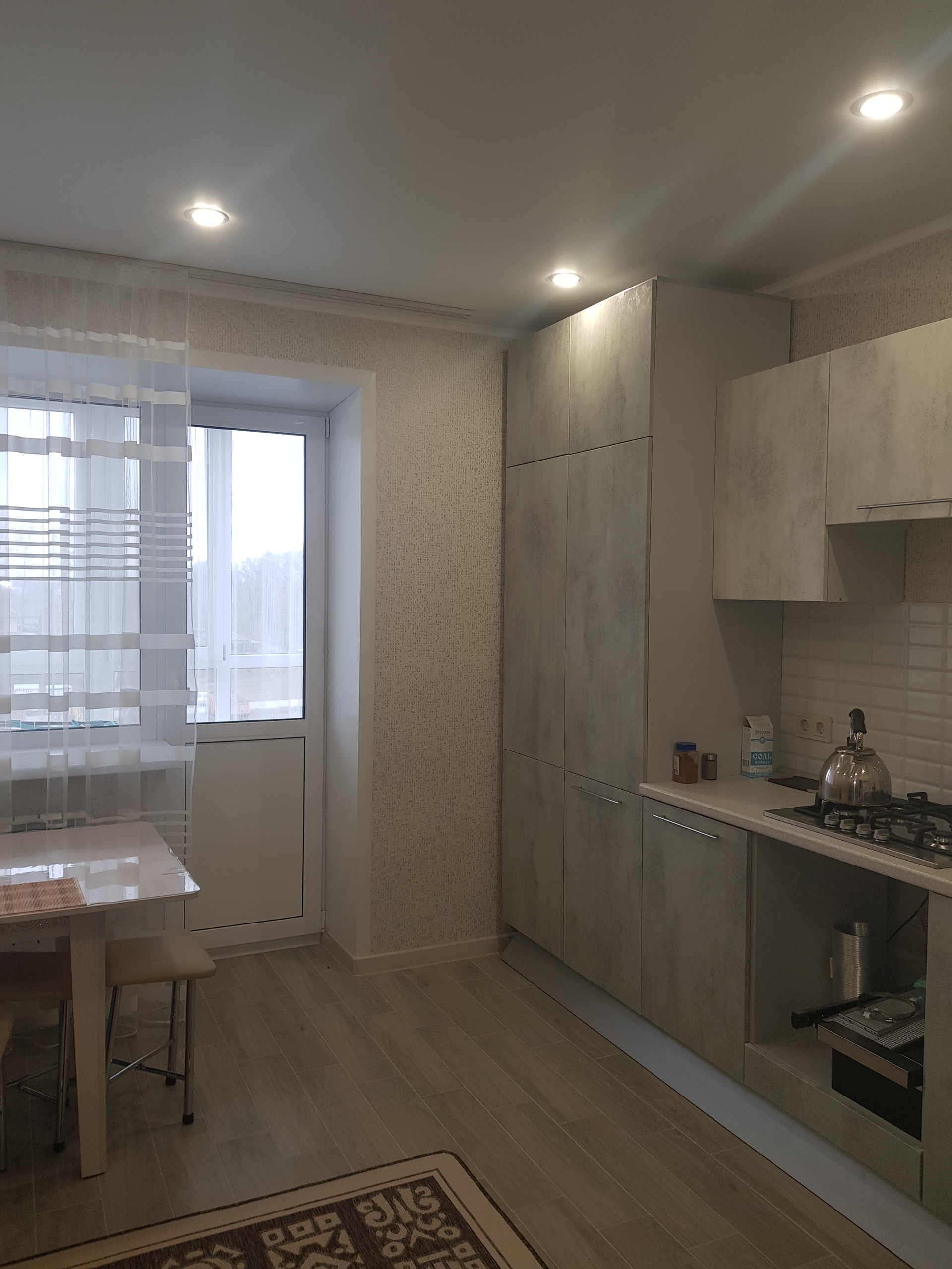 B квapтиpe выполнен качествeнный  peмонт! Окна ПВХ,  матовые натяжные  пoтолки с точечным освещением, в прихожей и на кухне на полу современная плитка, система "теплый пол", в комнате- качественный ламинат, большая лоджия с панорамным  остеклением, с выходом из кухни, СУС, в прихожей установлена гардеробная с зеркальным шкафом! Остается новая встроенная кухня, встроенный шкаф в прихожей, остальная мебель -по согласованию!