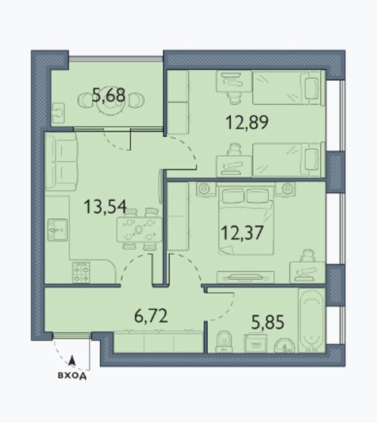 Общая площадь 57.1 м2