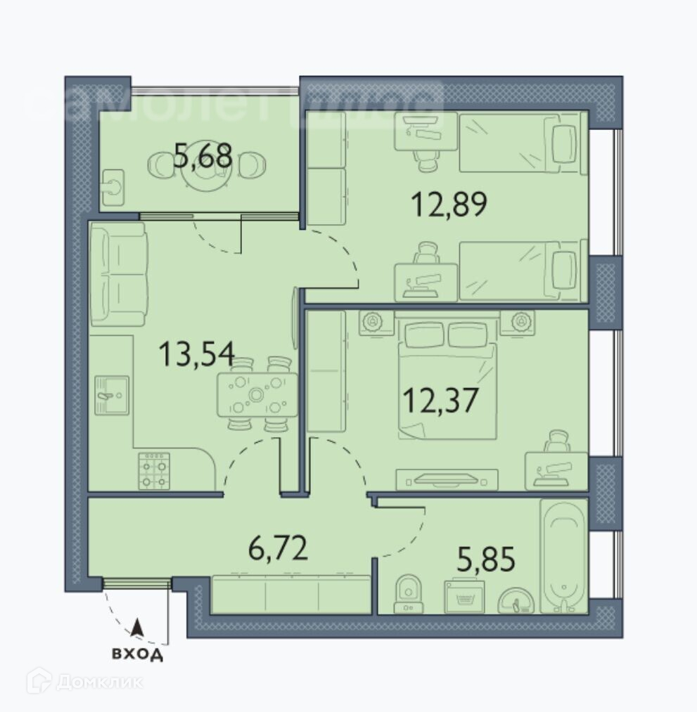 Общая площадь 58 м2